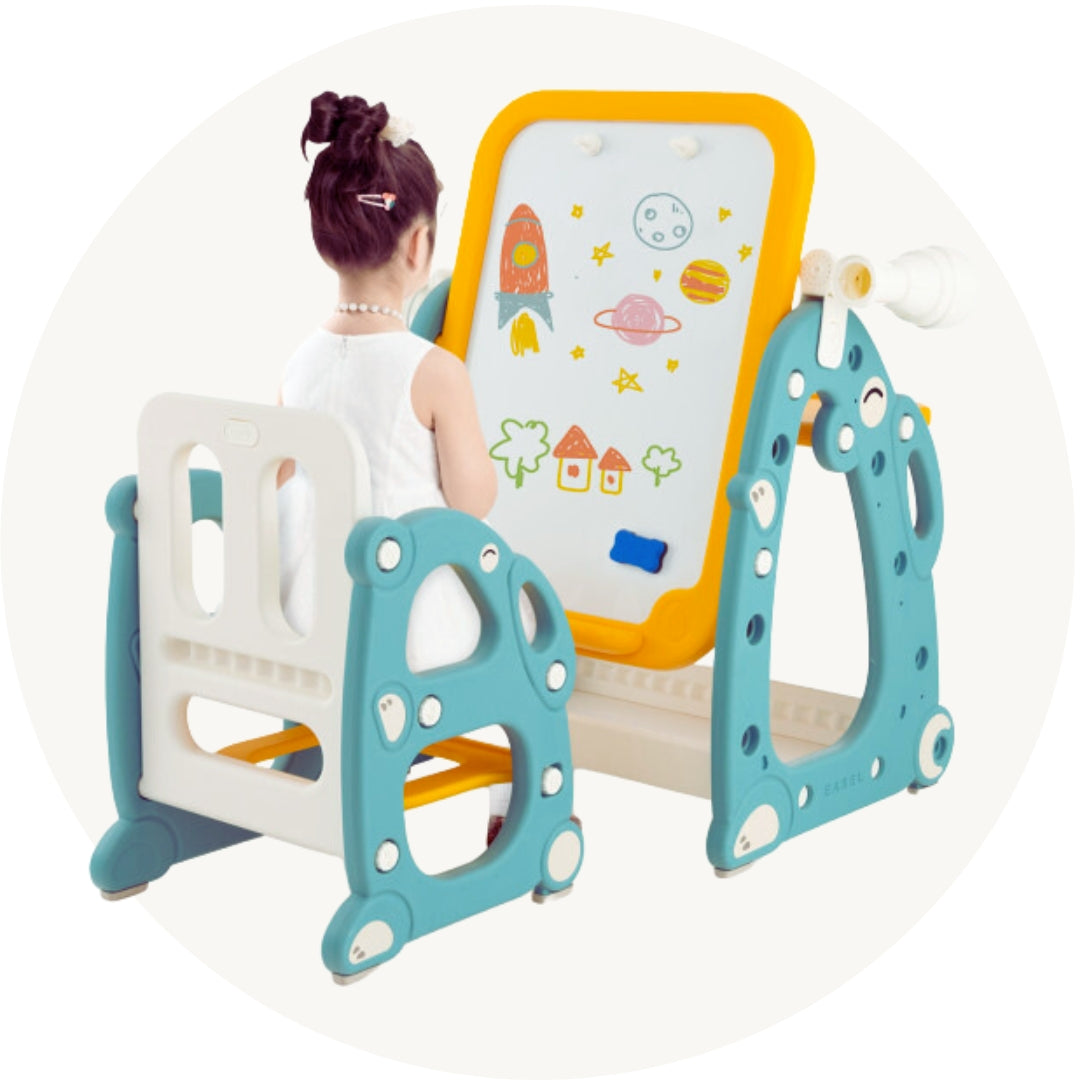 Kids Table & Chair Set with Bookshelf and Cabinet – Study Desk