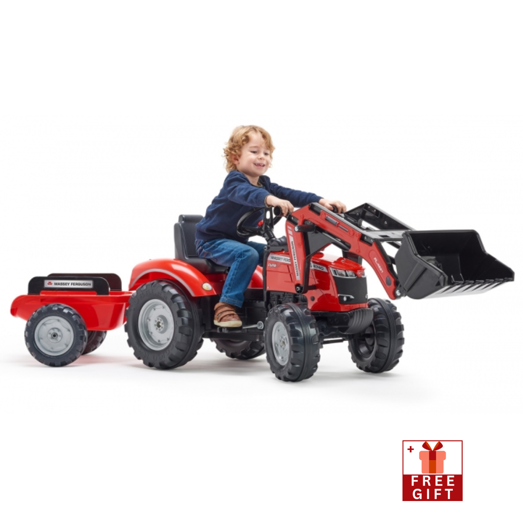 Falk Massey Ferguson Tractor with Trailer, Rake and Shovel, 2 sets of Stickers, Ride-on and Push-along +1.5 years FA241C