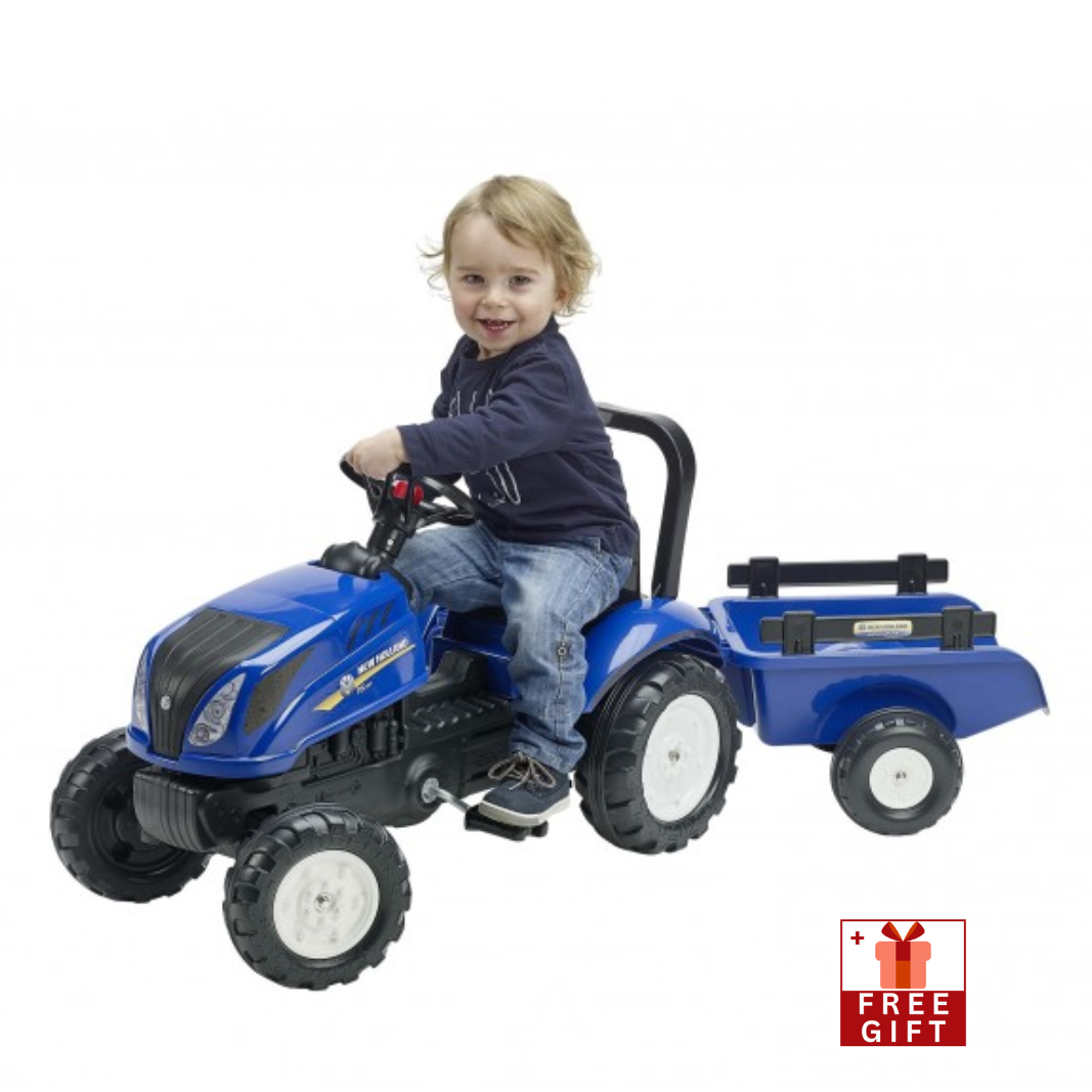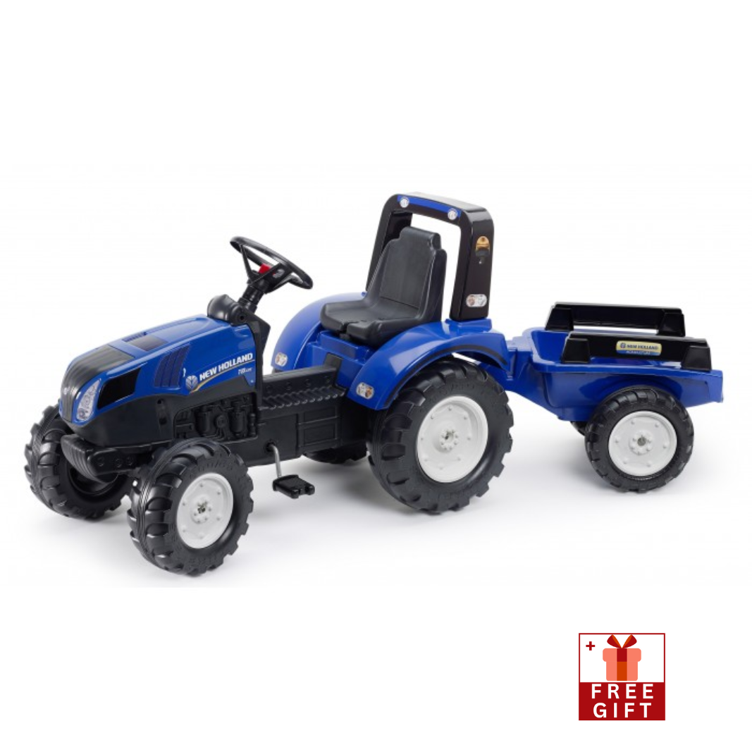 Falk New Holland T6 Pedal Tractor with Trailer and Opening Bonnet, Ride-on + 2 years FA3080AB