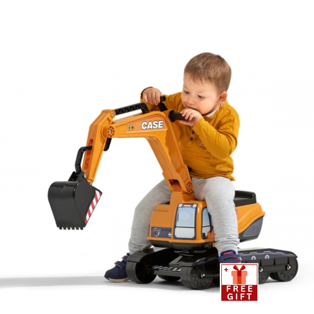 Falk Case CE 580 Super N Pedal Backhoe Loader with Front Loader, Rear Excavator and Maxi Tilt Trailer, Ride-on +3 years FA997W