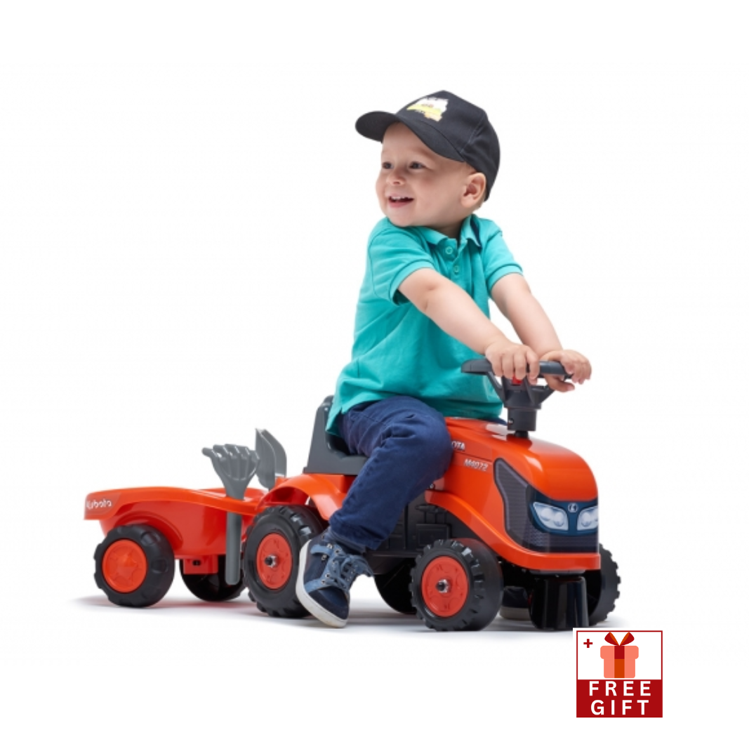 Falk Kubota Tractor with Trailer, Rake and Shovel, 2 sets of stickers, Ride-on and Push-along +1.5 years FA260C