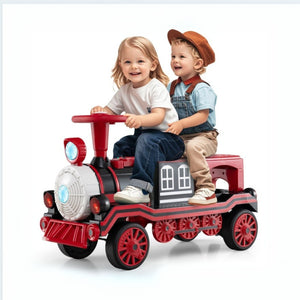 All aboard for endless fun! This 12V 2‑Seater Train Whistle Ride On Toy is the ultimate electric ride on train for kids aged 3–8. Featuring one fixed seat and a removable chair, it’s perfect for siblings or friends to enjoy a smooth ride together. Powered by dual 30W motors and a 12V battery, this battery powered train ride on offers long-lasting playtime