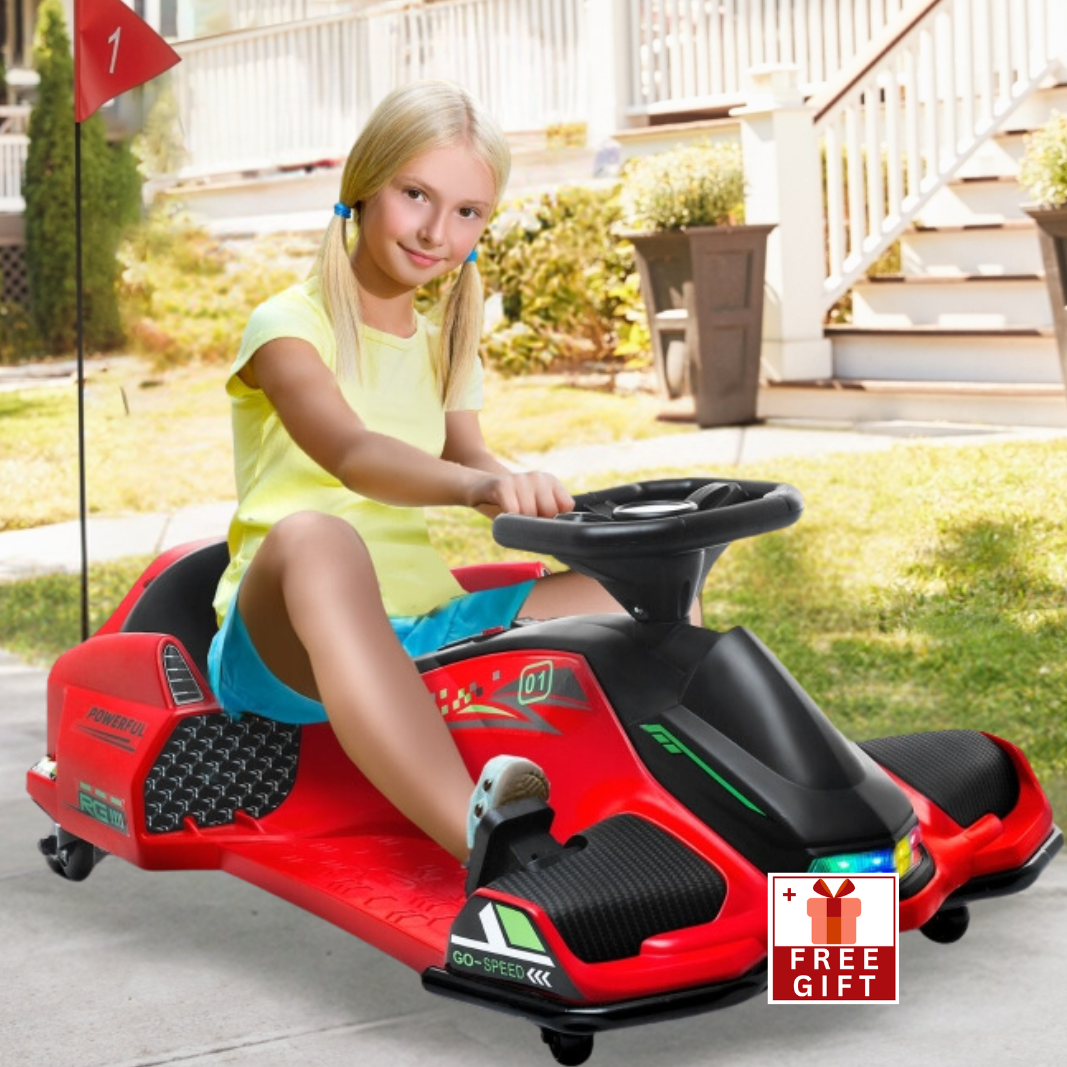 Experience the thrill of drifting with our 12V Electric Drifting Ride-On Go Kart. This exciting ride-on toy is perfect for adrenaline junkies, offering sideways fun with its drift feature. With adjustable speed options, vibrant lights, and groovy music, this go-kart ride-on toy provides a feast for the senses while ensuring a safe and smooth ride for young drivers.