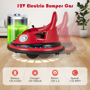 - 12V High-Performance Bumper Car: Equipped with a 12V 4.5AH battery and dual 12V motors, this kids ride-on bumper car features 360° rotatable driving wheels for thrilling spins and extended fun.