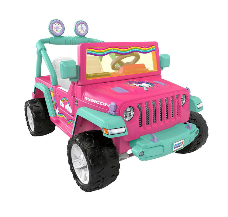 12V Power Wheels Rainbow Unicorn Jeep Wrangler Preschool Ride-On Toy With Sounds & Cute Stickers