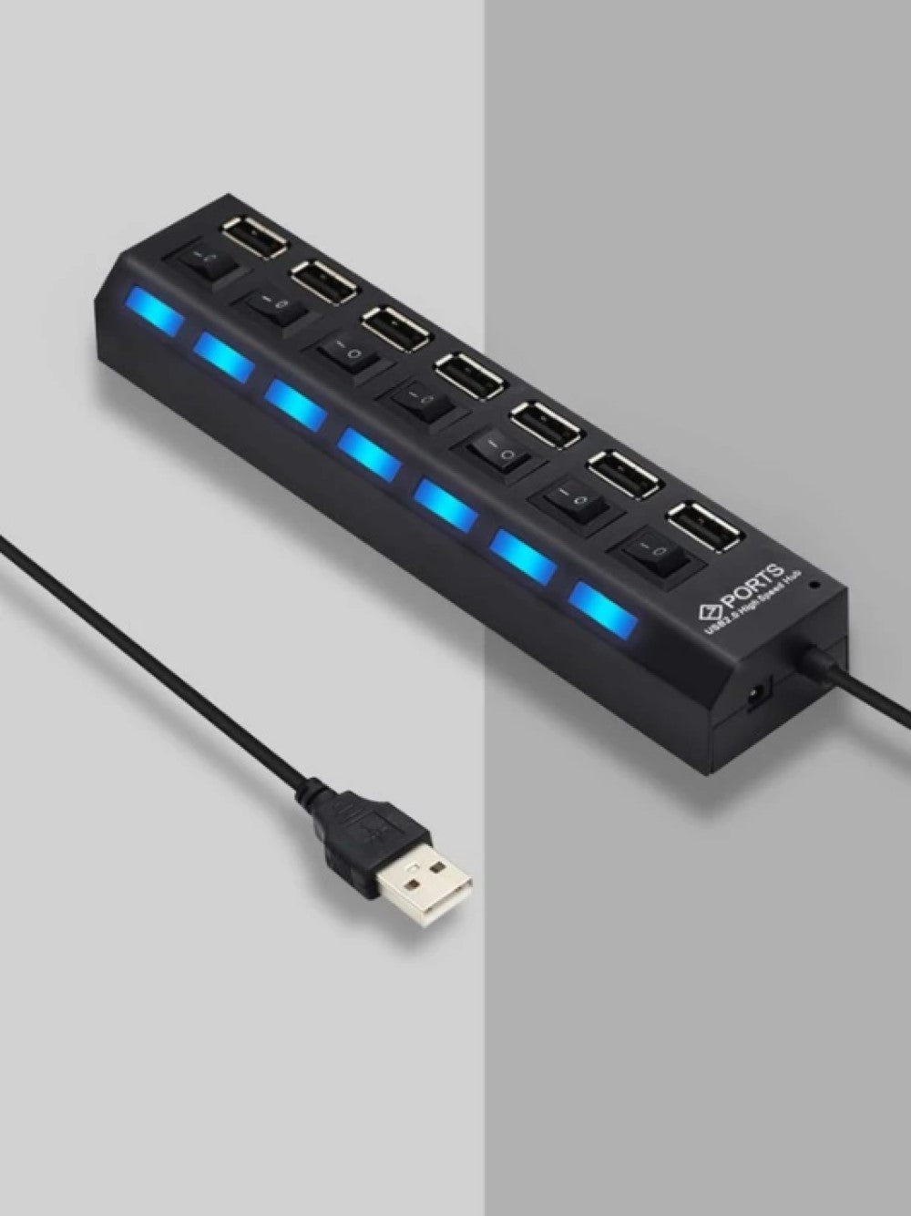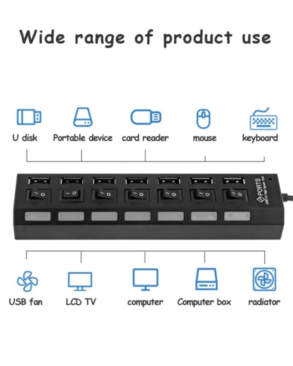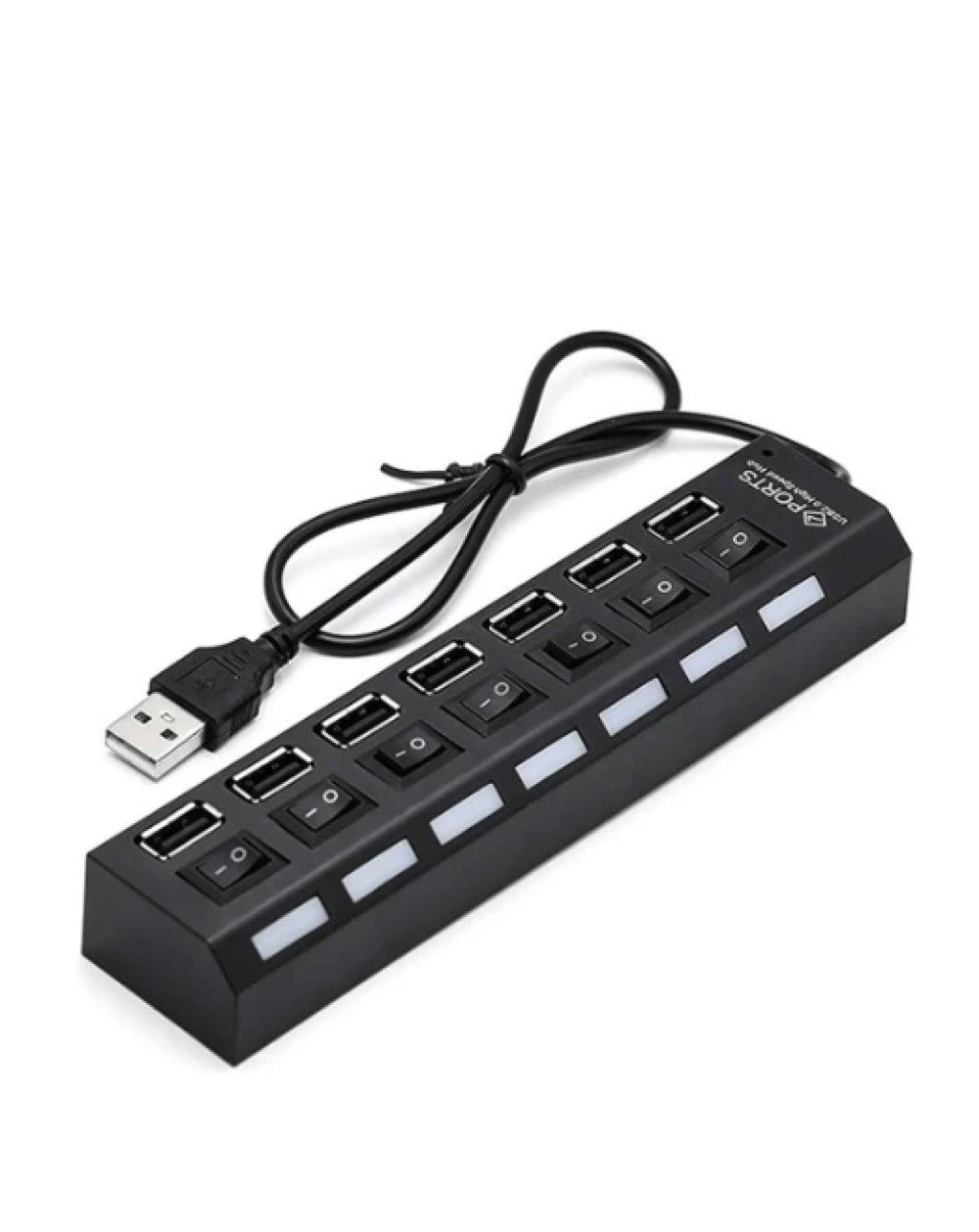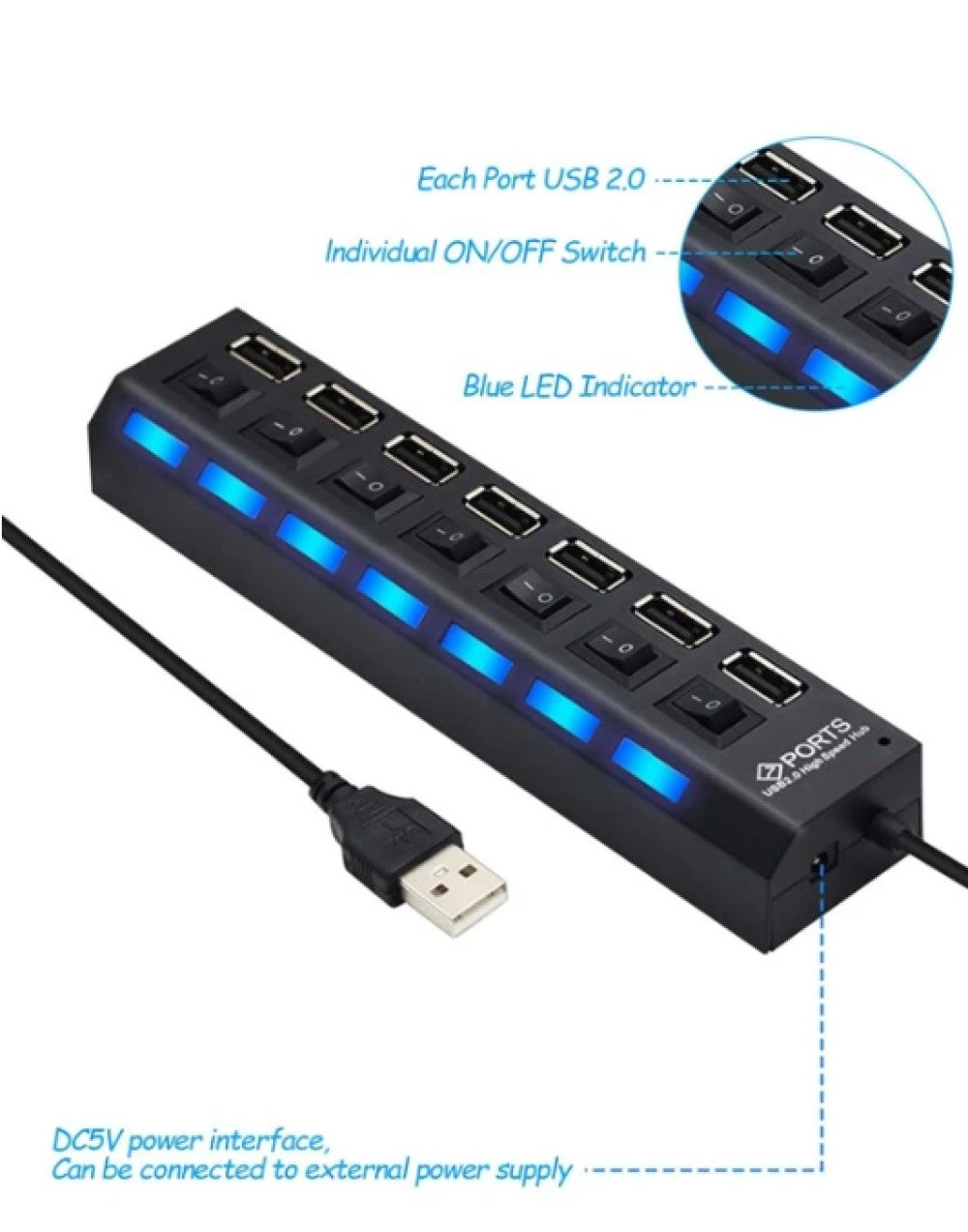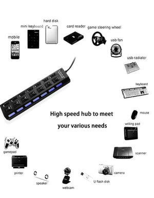 1pc 7 Port LED USB Hub Splitter With Individual Switch Usb Hub Splitter With Individual Switch USB Adapter Hub Multi-Port Socket Powered ON/OFF Switch Charger Splitter For Pc Laptop Computer U Disk Phone Tablet
