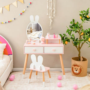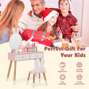 2 in 1 Wooden Princess Vanity Set for Kids with Mirror – Perfect for Playtime!