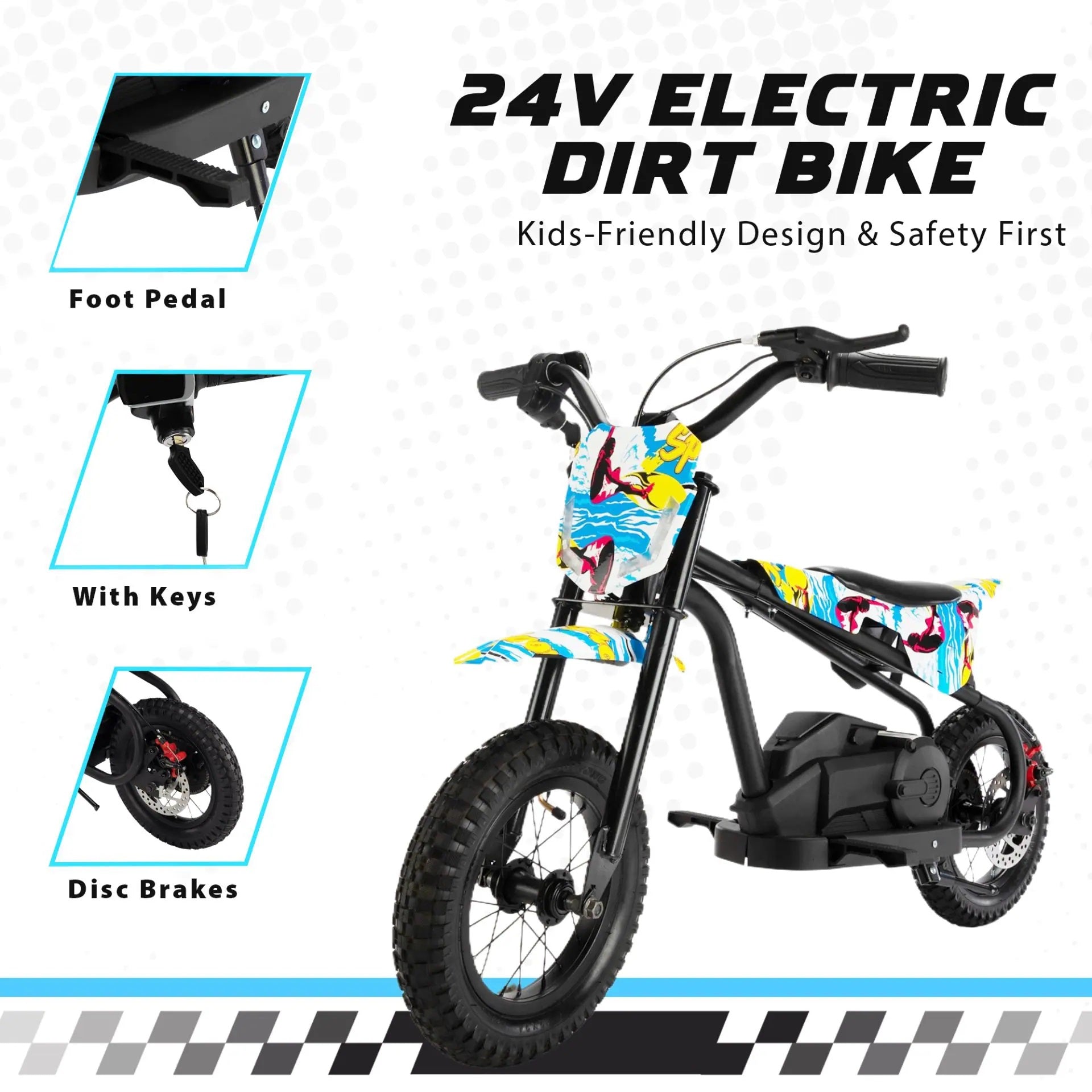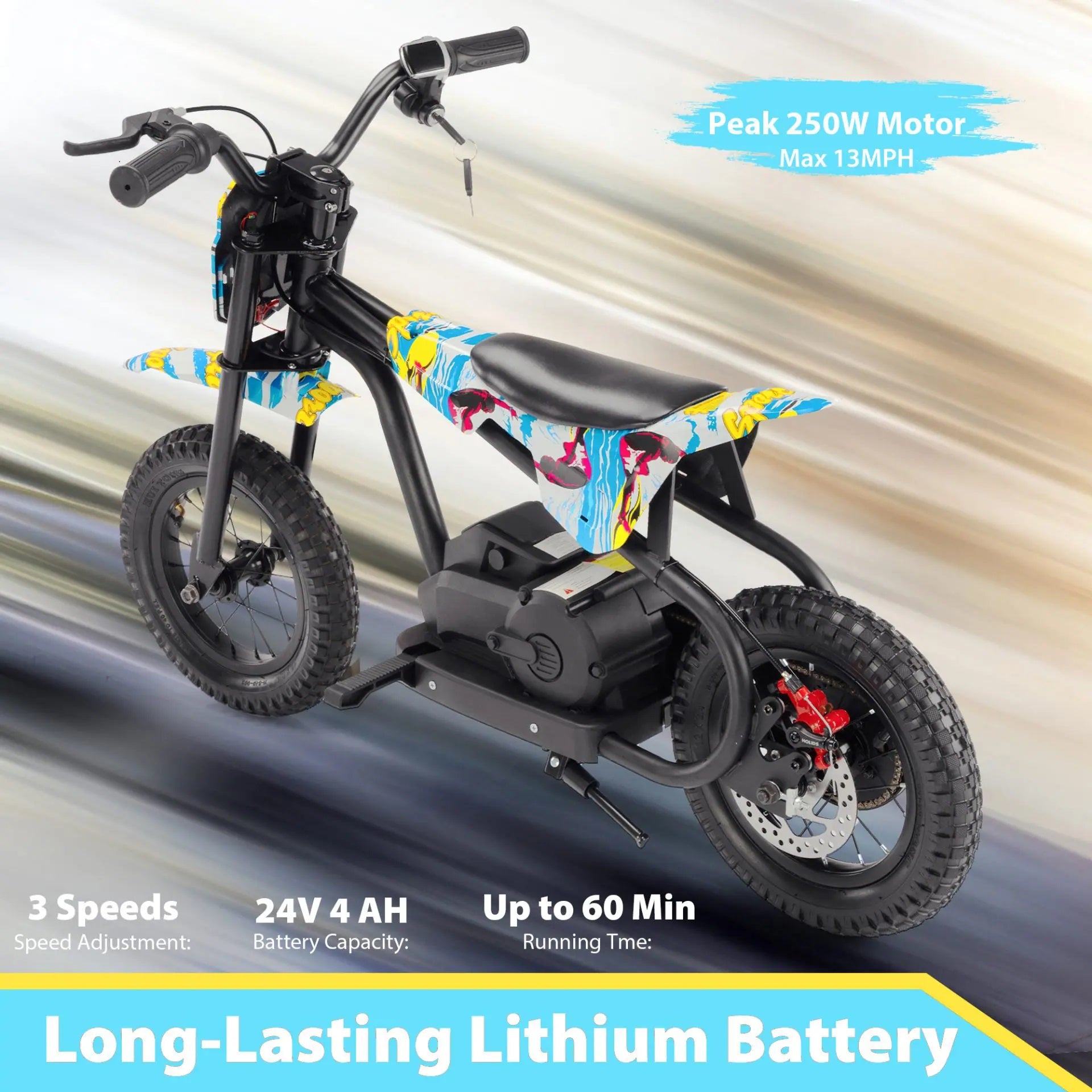 24V Electric Ride-On Dirt Bike for Kids Ages 6+, Off-Road Motorbike with 250W Motor, 3-Speed Modes, Disc Brakes, and Lithium Battery – Ride-On Motorcycle Up to 13MPH