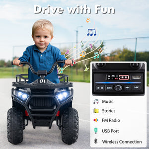 24V Kids Ride-On Electric ATV Quad Car with LED Lights, Music & Radio