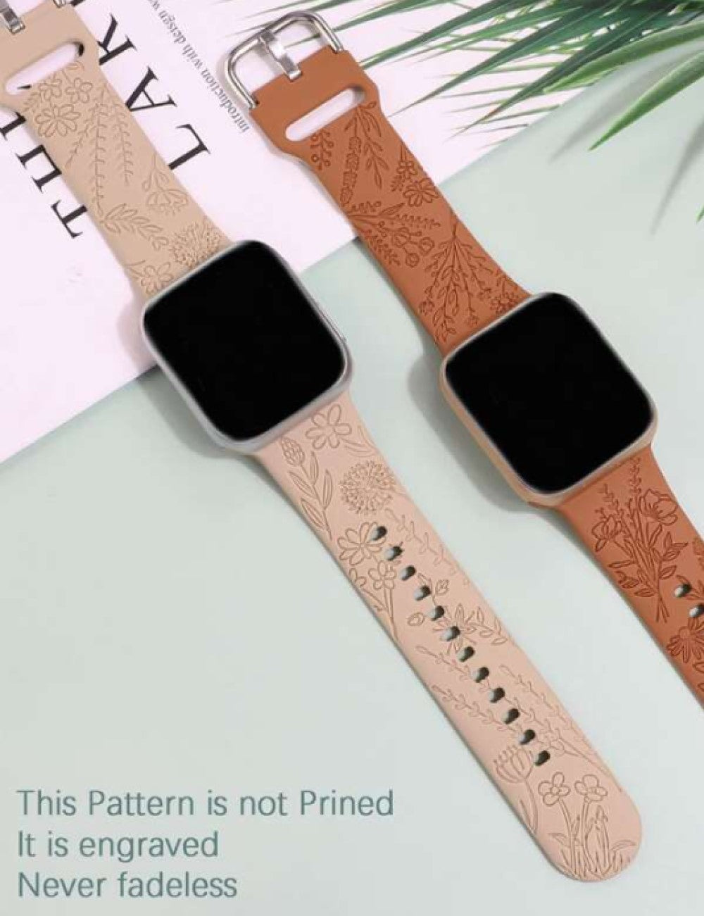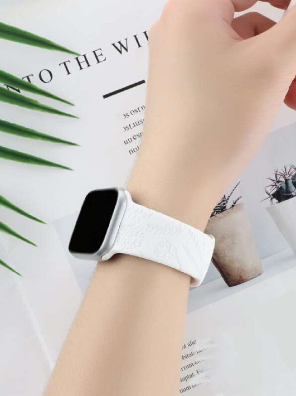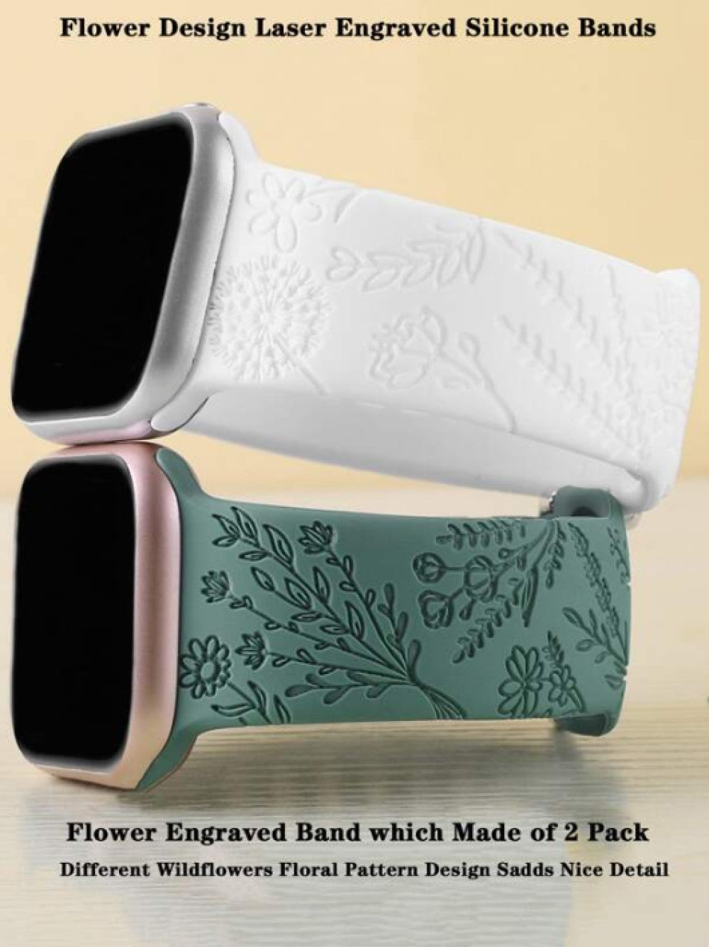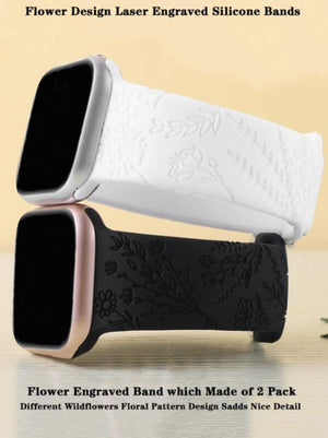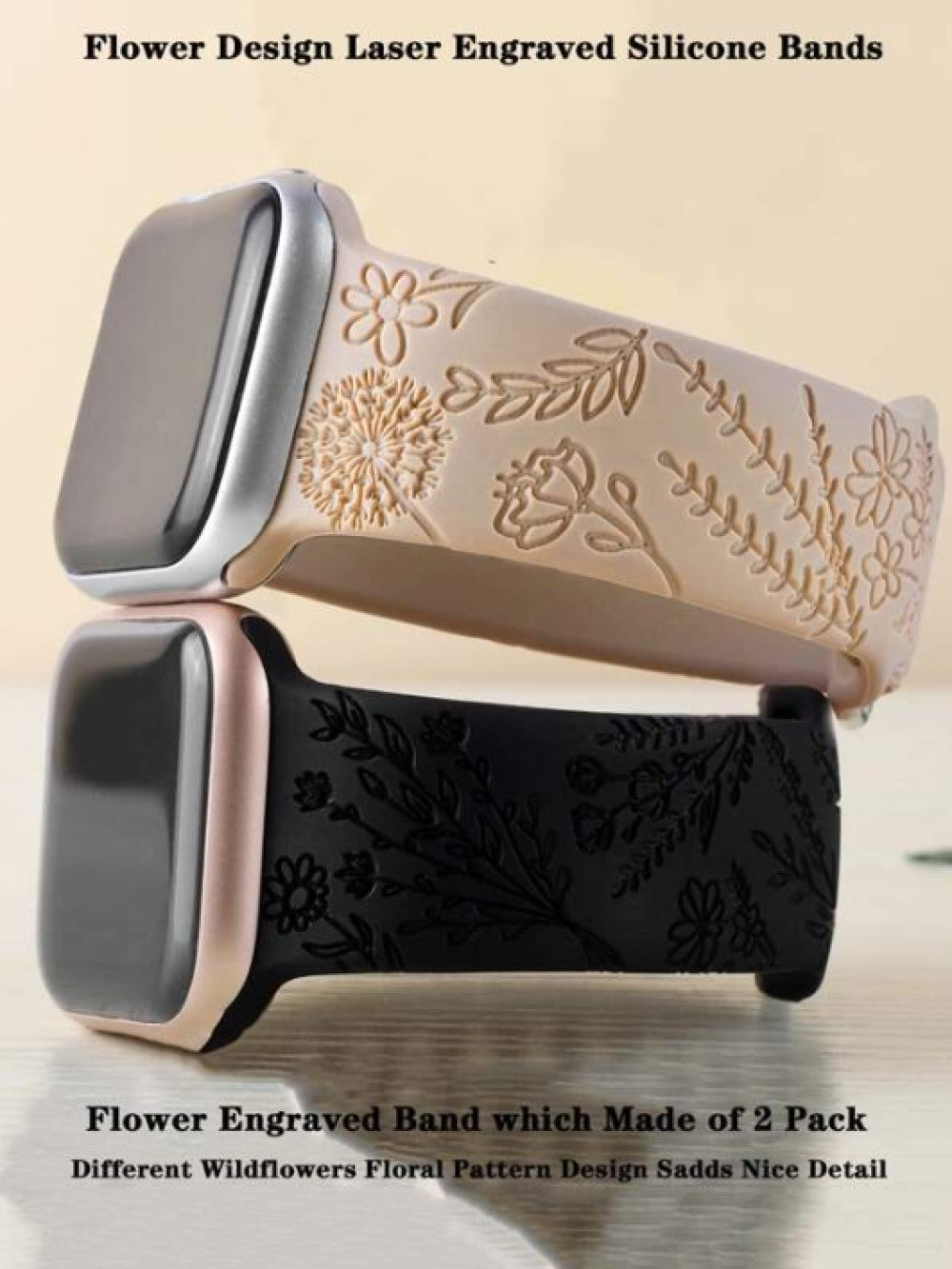 2pcs Flower Embossed Silicone Breathable Watchband Compatible With Apple Watch