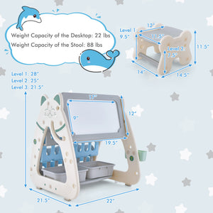 3-in-1 Double-Sided Magnetic Dry Erase Board with Stool and Reversible Writing Desk