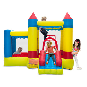 Are you looking for an inflatable castle for your lovely kid? If so, you can't miss this high quality inflatable castle. Adopting environmentally friendly material, it features sturdy and durable, and it is an ideal bounce house for backyards, indoors, sleepovers and more. It allows three kids to play in it at the same time. Moreover, its characteristic castle structure design can make your kids play with imagination. With appropriate color collocation, it will give children a good visual experience. What a great present for your little prince or princess to bounce around!