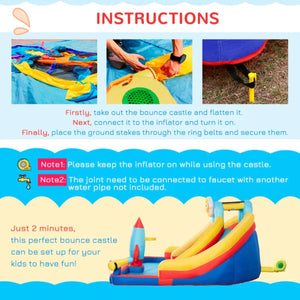Create a thrilling backyard water park experience with our 5-in-1 Inflatable Water Slide, Rocket-themed Kids Castle Bounce House. This inflatable playset offers endless entertainment with its dual slides, pool, water cannons, basketball hoop, and climbing wall. Perfect for children aged 3-8 years old, this bounce house provides a safe and exciting environment for kids to play and explore.