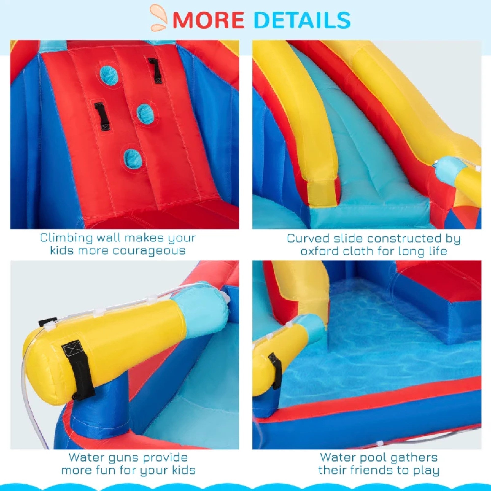 Pool or Ball Pit: The swimming area provides a refreshing splash zone for kids to enjoy. Alternatively, convert the pool into a ball pit for dry play on days when water play is not preferred. This versatile feature adds to the excitement and keeps kids entertained for hours.