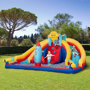 5-in-1 Inflatable Water Slide, Rocket Themed Kids Castle Bounce House with Slide Includes Carry Bag 750W Air Blower