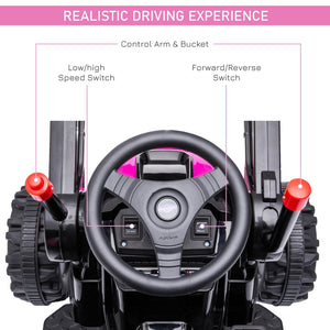 6V Kids Ride on Excavator, Bulldozer, Electric Construction Vehicle, Rechargeable Battery Powered Truck with Adjustable Bucket, High/Low Speed, Realistic Sound and Headlights, Pink