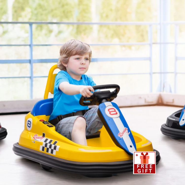 - Exhilarating Spin: This toddler bumper car features a thrilling 360° turn that keeps little thrill-seekers excited. With built-in music, a horn, and light-up LED edging, the ride on bumper car for toddlers is truly awesome.