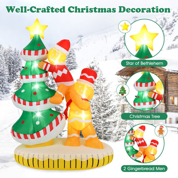 · Gingerbread Men and Tree Combo: Adorable 7 ft inflatable Christmas tree with two Gingerbread men climbing, adding festive charm to your outdoor holiday decor.