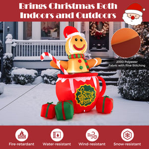7 Ft Inflatable Gingerbread Man in Hot Cocoa Mug with LED Lights and Gift Box Display