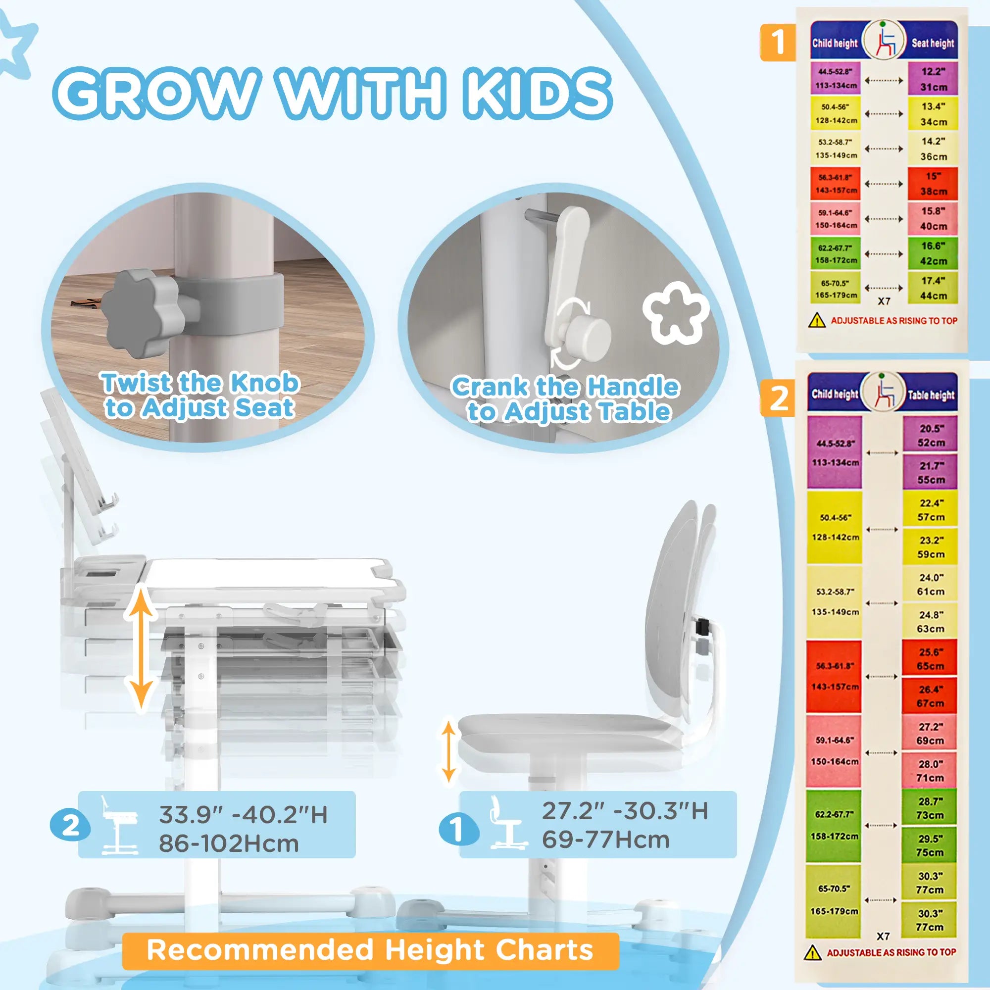 - Height-Adjustable Design: Both desk and chair grow with your child, offering customizable height for long-term comfort.