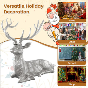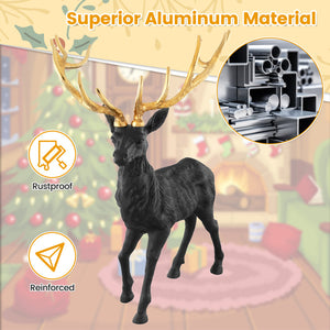 Add festive charm to your space with this Aluminum Reindeer Sculpture. Featuring lifelike antlers and realistic details, this standing deer statue is perfect for elegant indoor Christmas decor. Made from durable, rustproof aluminum, it's ideal for Christmas parties and versatile enough for home, office, or shop displays. The smooth surface ensures easy maintenance, while the no-assembly design saves time and effort. Available in gold, black, or silver finishes, this reindeer statue brings festive magic and style to your holiday decor, making it a must-have for the season.