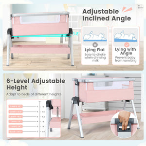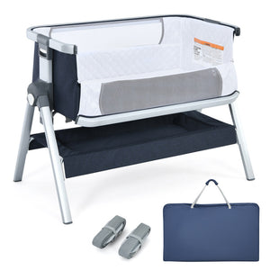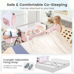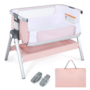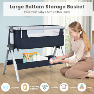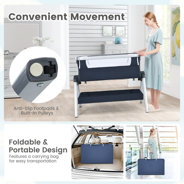 Baby Bedside Bassinet with Storage Basket & Wheels – Adjustable Infant Sleeper