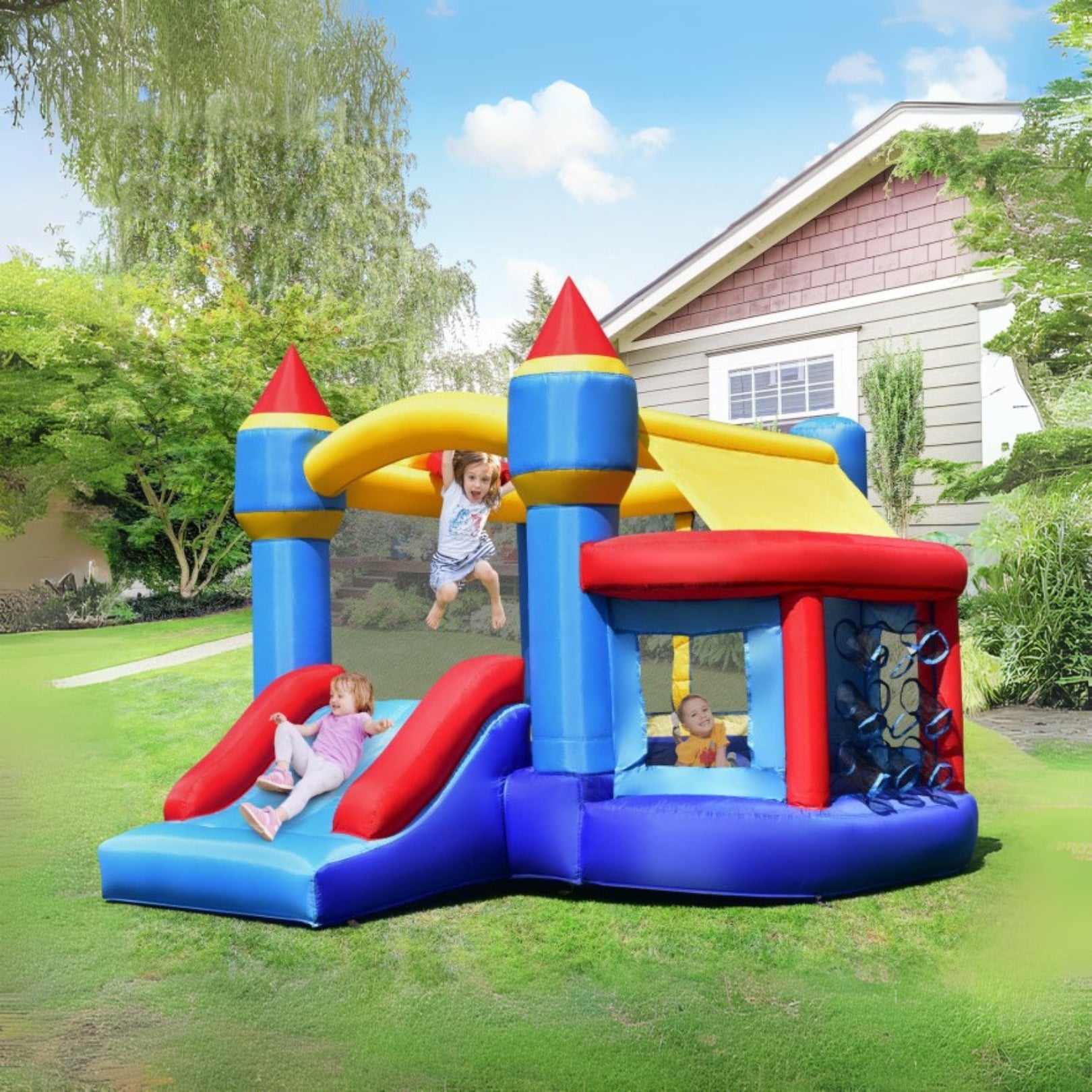 With a long fill tube keeping the blower away from the bounce house with slide and a repair kit included for added convenience, this inflatable bounce house is designed with both safety and durability in mind. Suitable for children aged 3-10 with a maximum height of 5 feet and a maximum weight capacity of 300 lbs, it's perfect for backyard parties, playdates, and more.