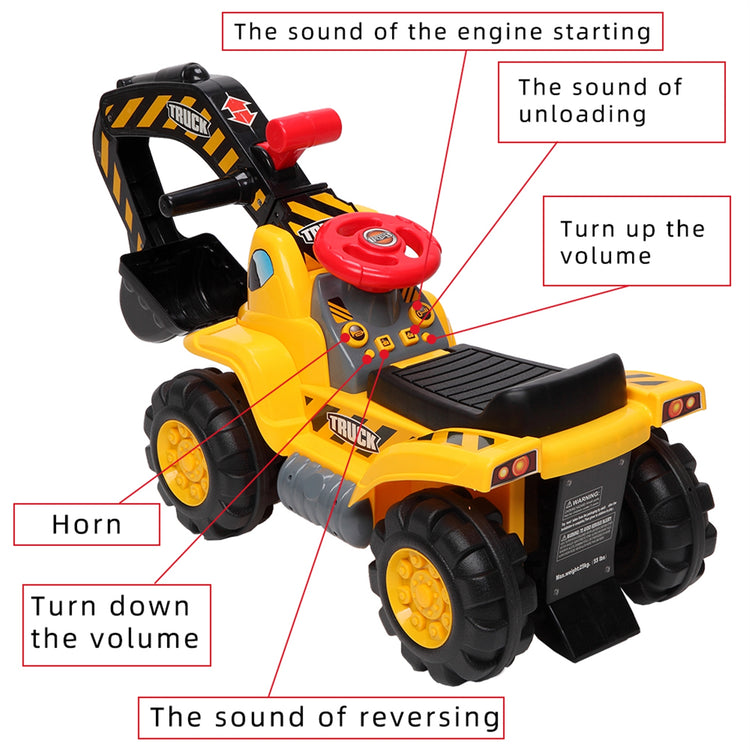 - Honking Horn: Equipped with a honking horn, this ride-on tractor lets little ones imagine they're driving their very own construction excavator.