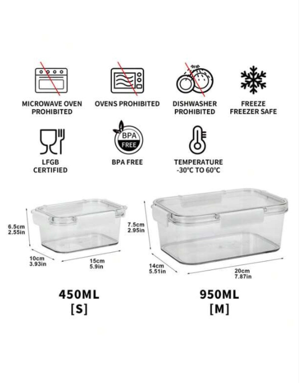 Clear Food Storage Box, Plastic Food Storage Container For Home Kitchen Office, 1Pcs