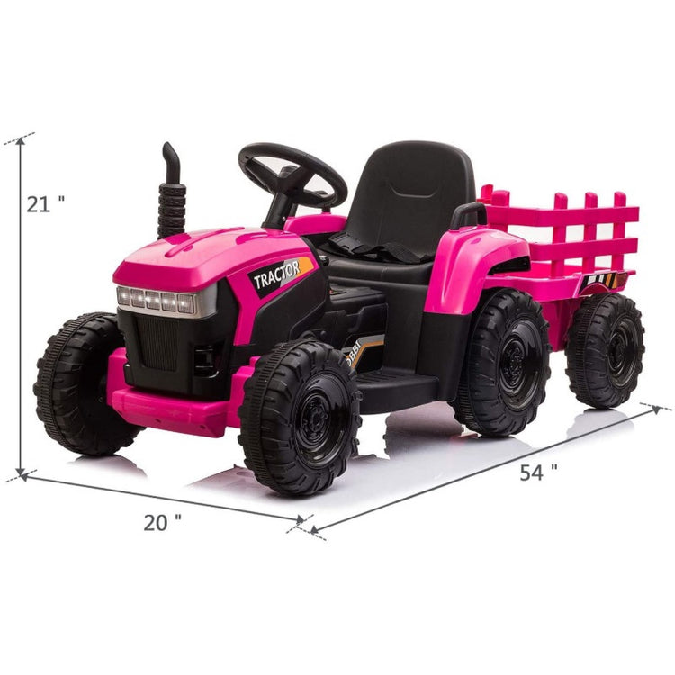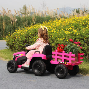 Tobbi 12V Battery Powered Toy Tractor with Trailer, Kids Electric Ride On Toy Car, Rose Red