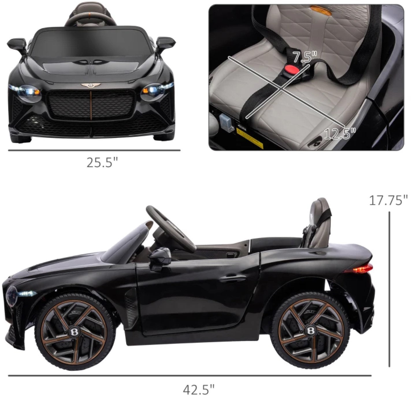 12V Licensed Bentley Bacalar Kids Electric Ride-on Car, Battery Powered Sports Car Toy with Remote Control, Black