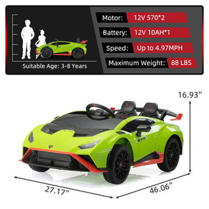 Tobbi 12V Licensed Lamborghini Kids Electric Ride-on Car, Battery Powered Toy Car with Remote Control, Green
