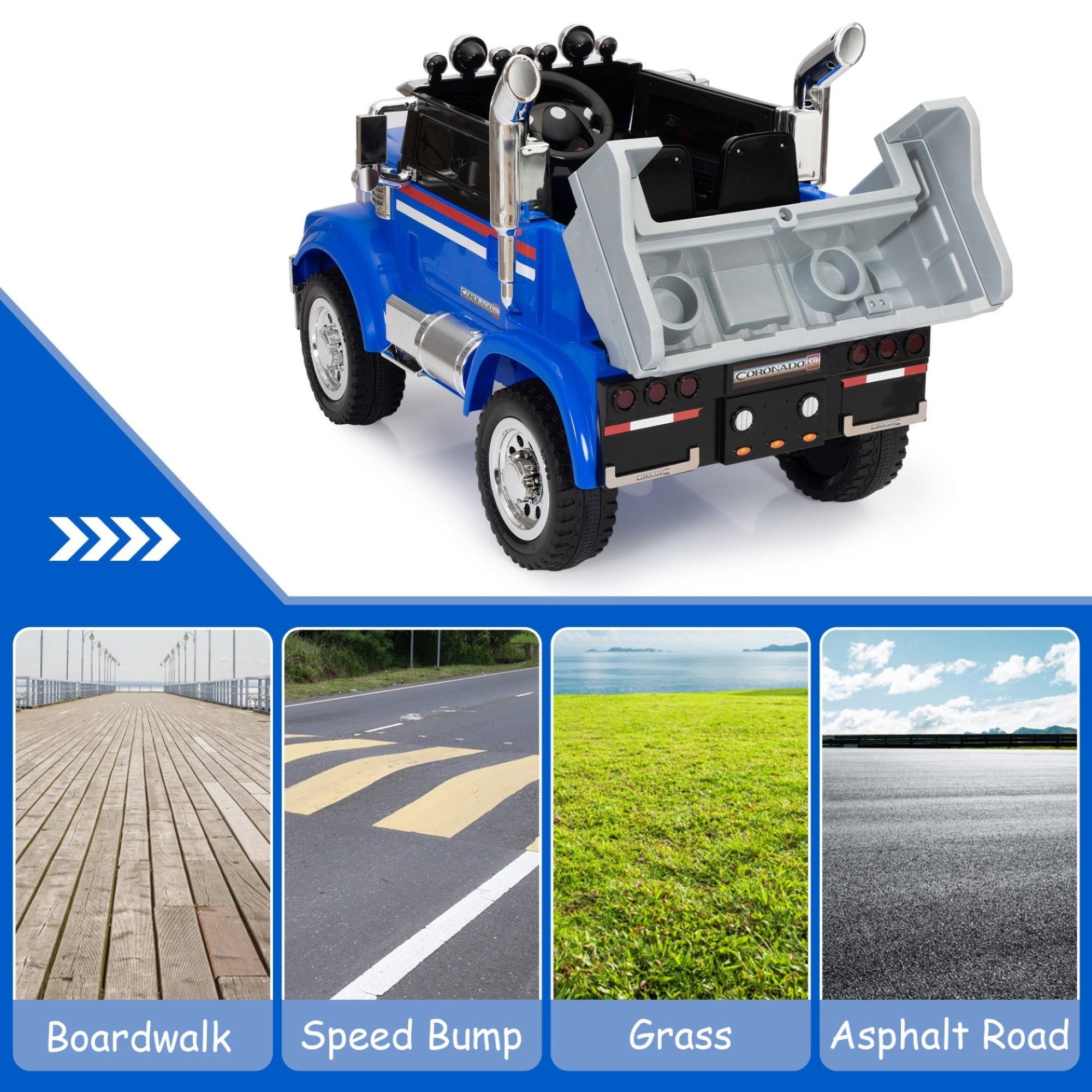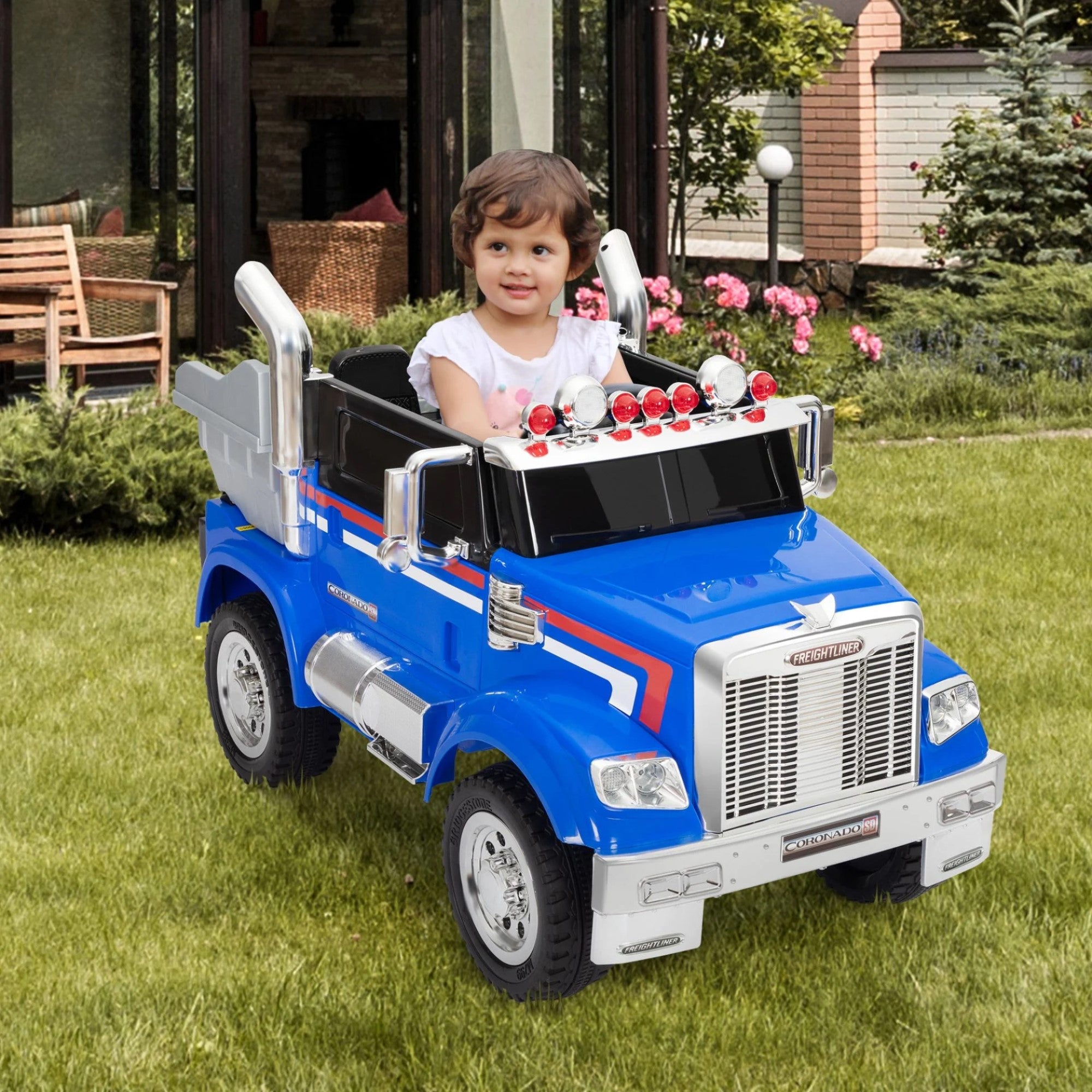 Tobbi 12V Toy Electric Licensed Freightliner, Kids Ride On Toy Car Battery Powered Dump Truck Tractor with Remote Control - Kids Electric Truck, Children's Toy Truck Blue