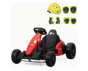Tobbi 24V Electric Kids Go Kart, Battery Powered Drift Racing Ride On Toy Car with Protective Suits - kids electric Go Kart, children's toy Go Kart Red