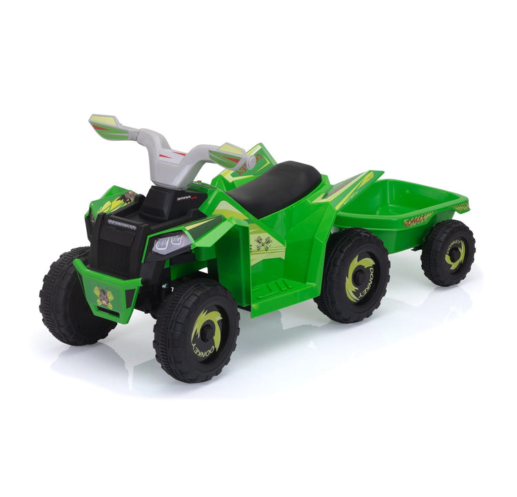 Tobbi 6V Electric Kids Ride On ATV with Trailer, Battery Powered 4 Wheeler Quad Toy Car, Wild Ass - Children's toy ATV, Toys ride on Green