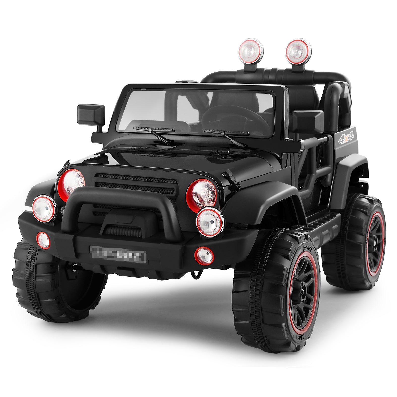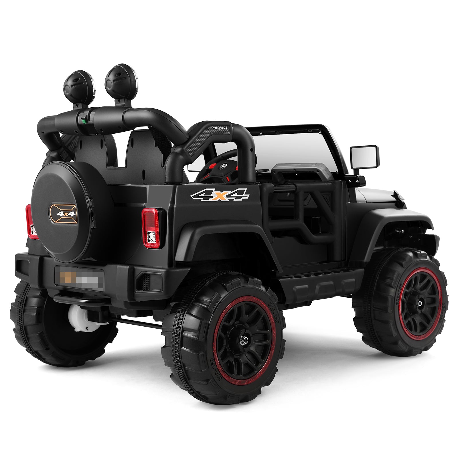 Electric Jeep Toy Car with Remote Control and MP3 - 12V Battery Powered Ride-On Truck with LED Lights and Cover - Black