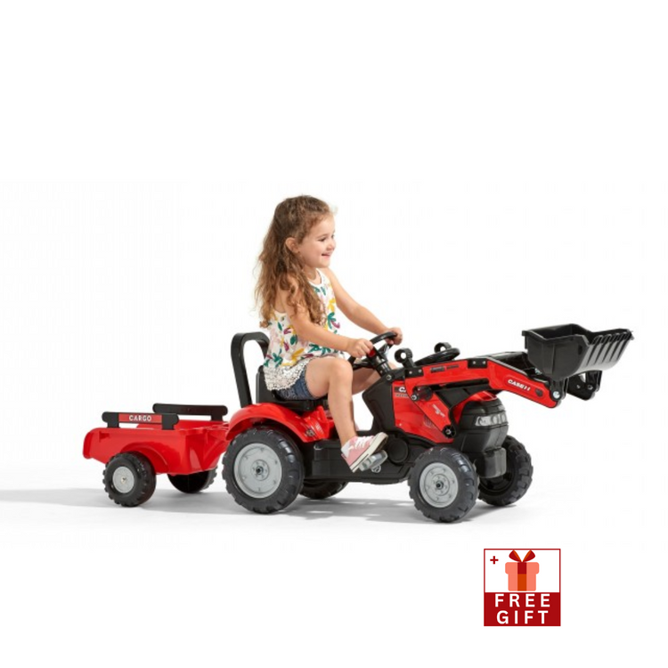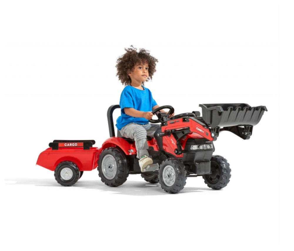 Falk Case IH Maxxum CVX 130 Pedal Tractor with Front Loader and Trailer, Red Toy Tractor for Your Toddler to Ride on