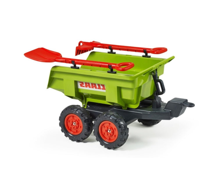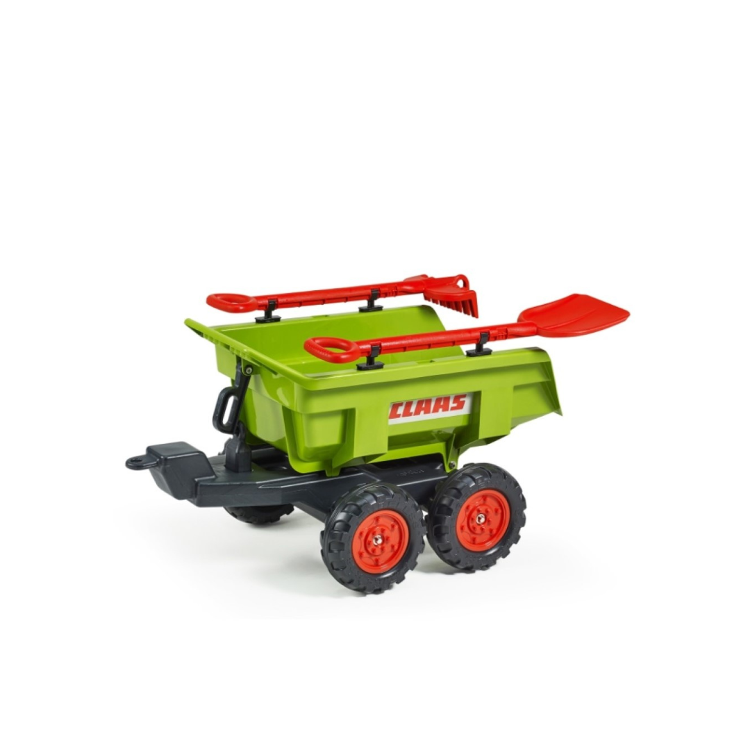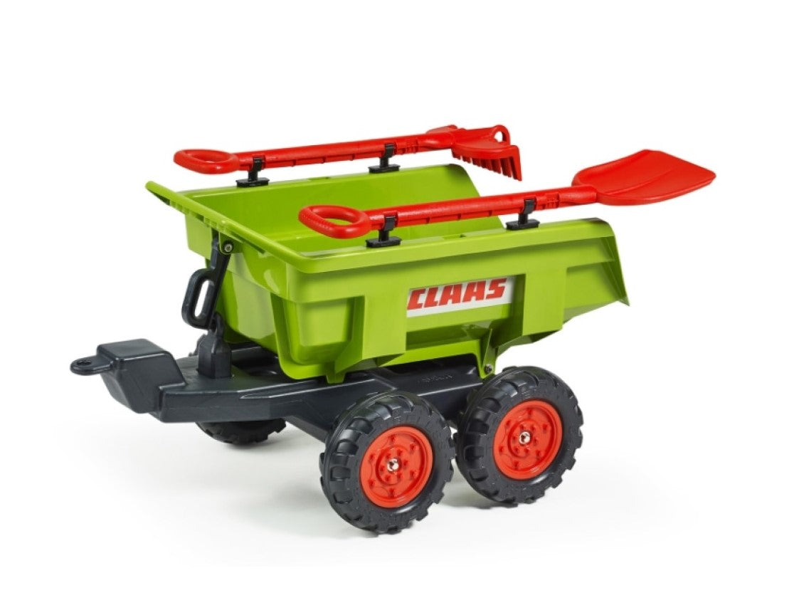 Falk Claas Twin Axles Maxi Tilt Trailer with Shovel and Rake for 3 - 7years Kids, Green