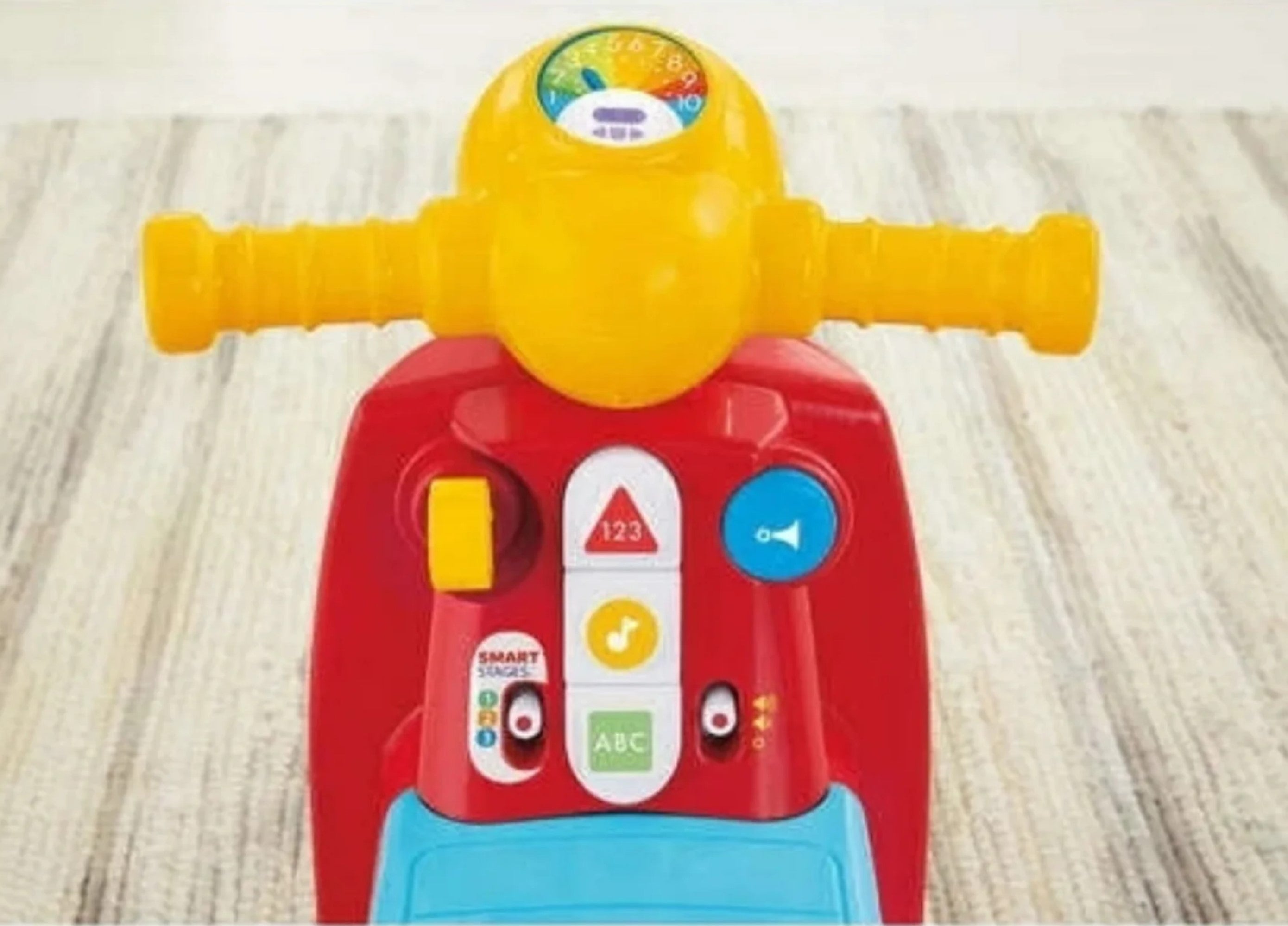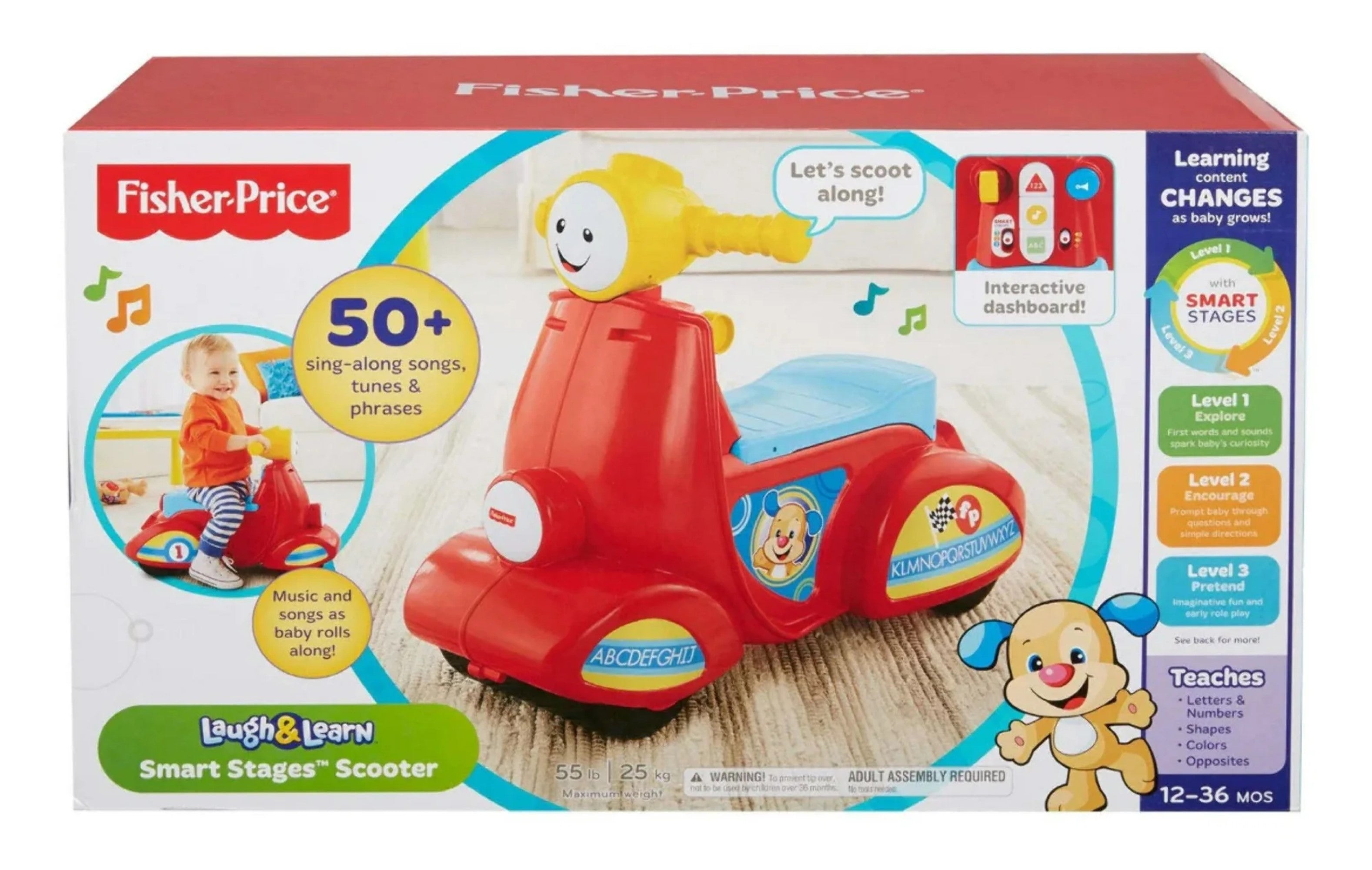 The Laugh & Learn Smart Stages Scooter from Fisher-Price helps get your little rider's motor skills rolling in the right direction. This ride-on toy scooter features motion-activated music and sounds that reward your toddler as they scoot along, plus an interactive dashboard with buttons that activate learning songs, sounds and phrases. With 3 Smart Stages levels of play that grow with your child, this toy scooter provides non-stop fun right through the toddler years!