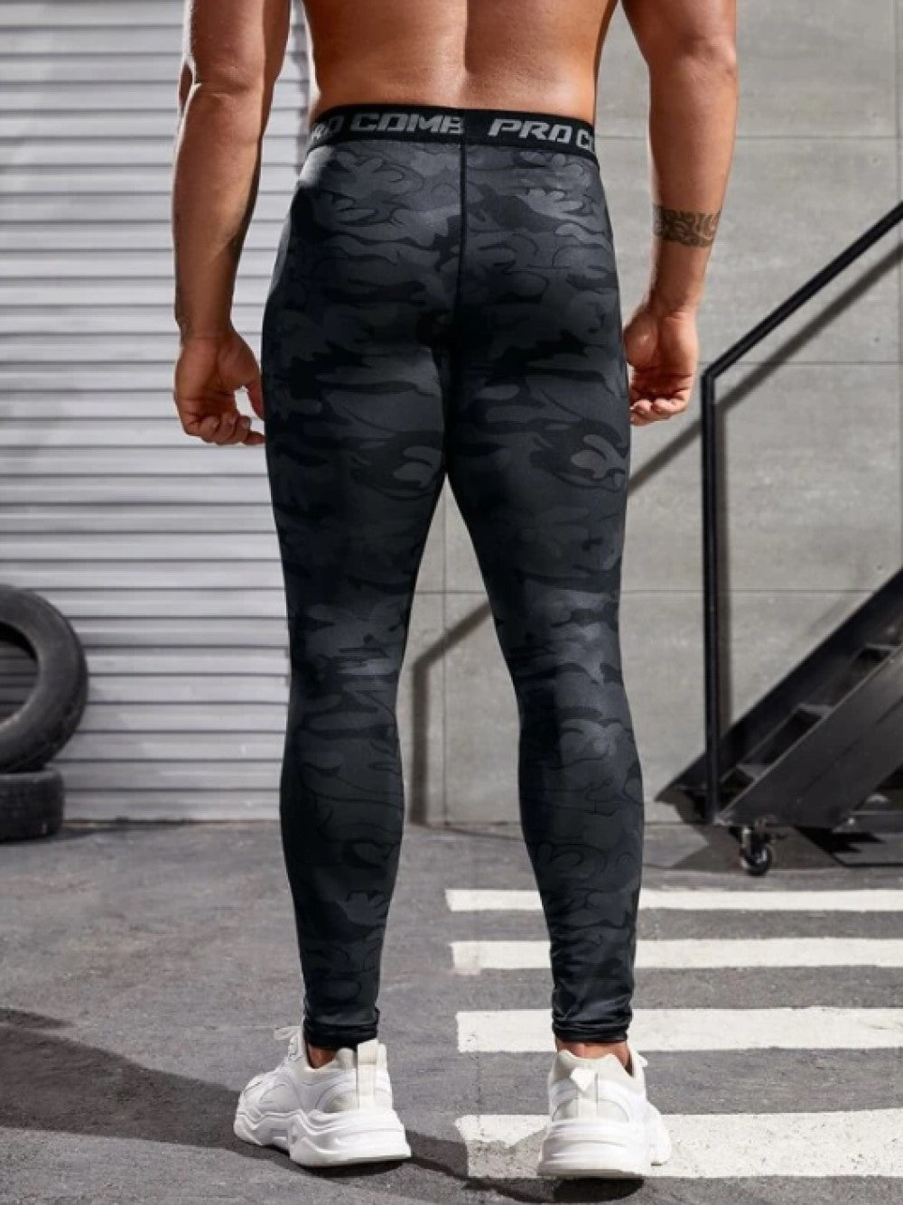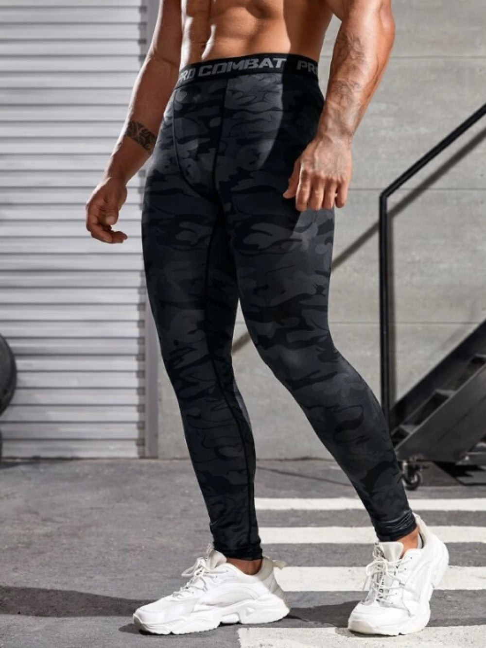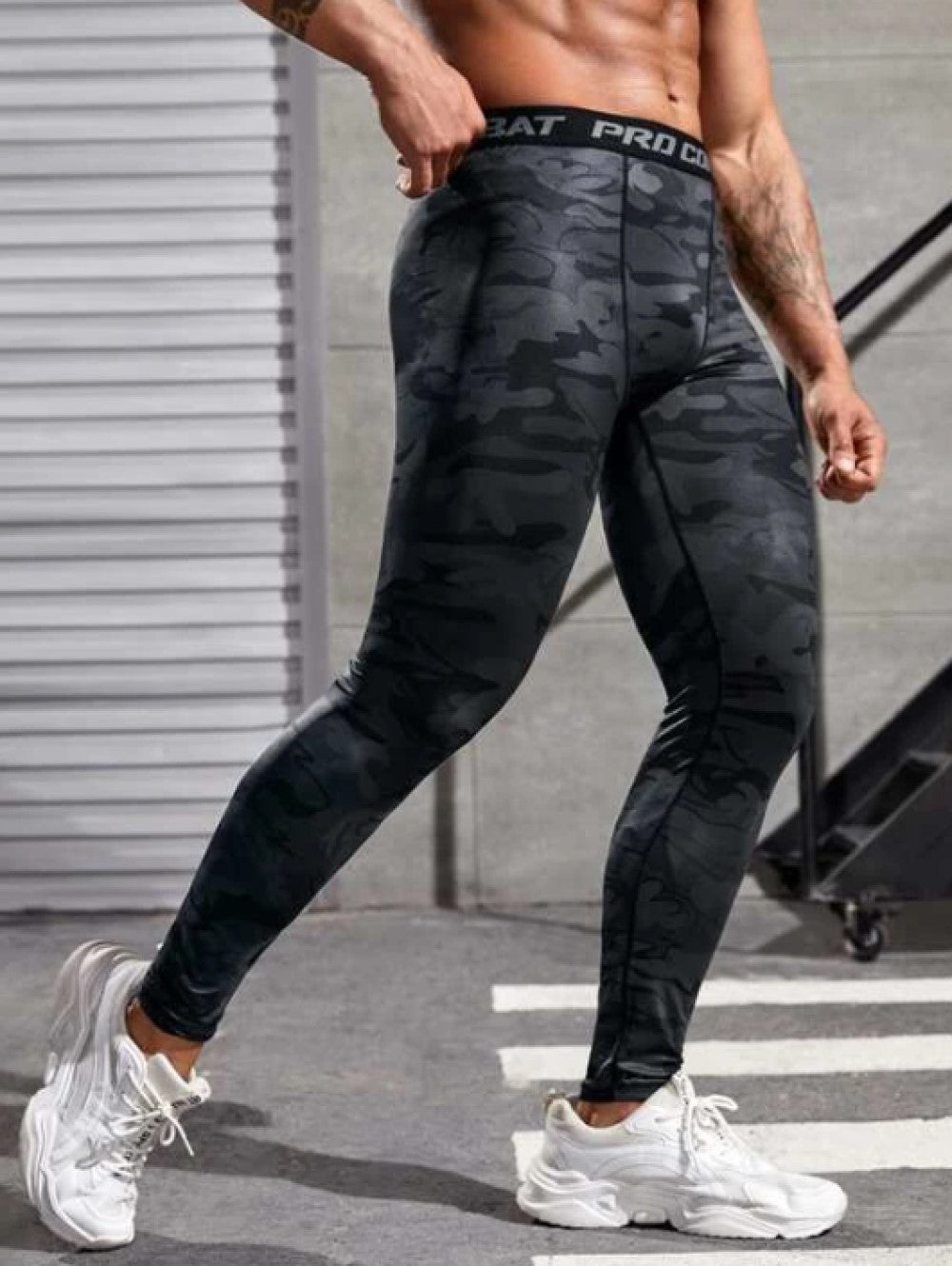 Fitness Men Camo Print Contrast Letter Tape Sports Tights