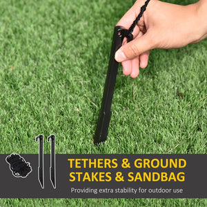 · Includes ground stakes, drawstrings, and a sandbag for stability during windy conditions.