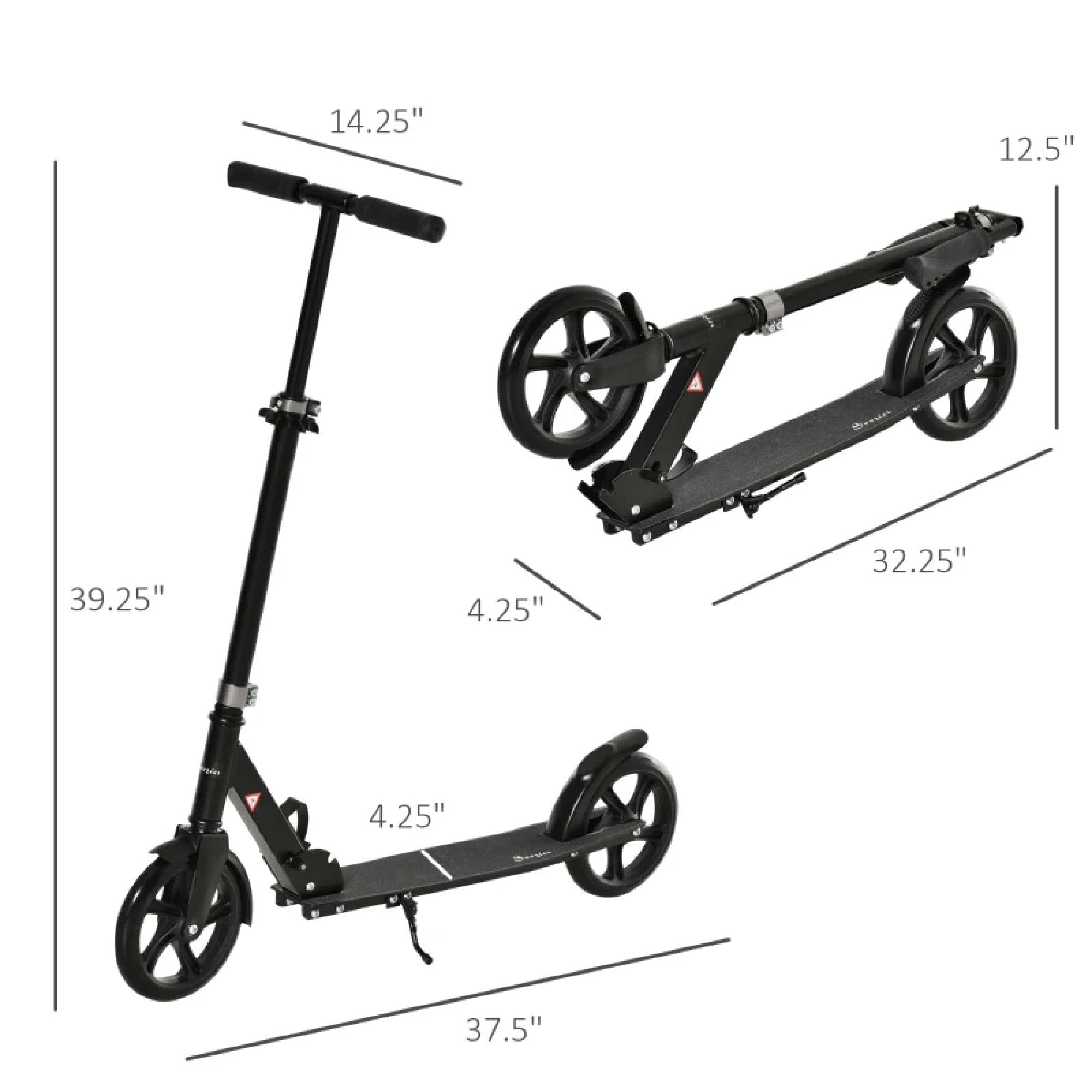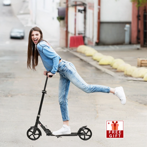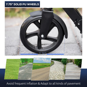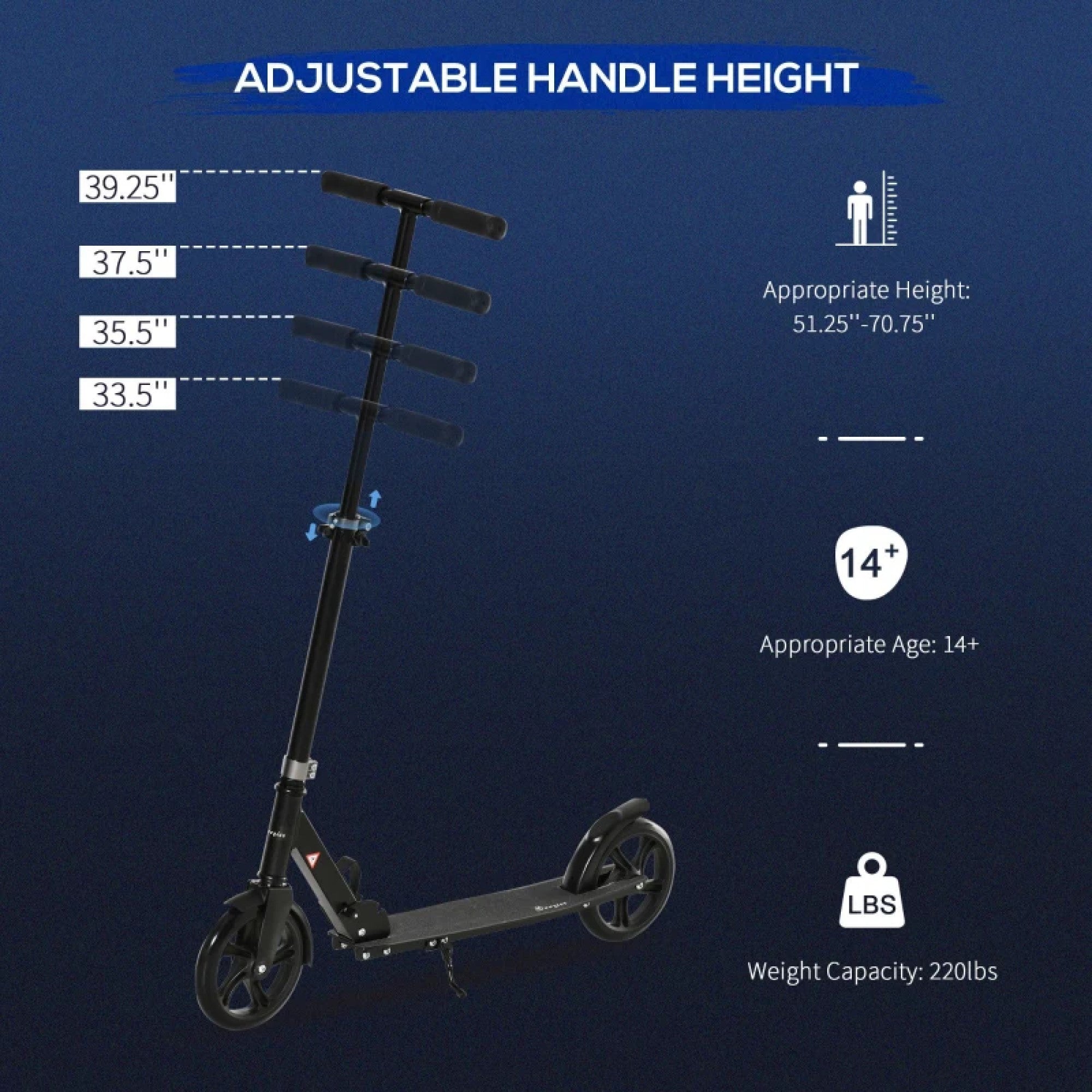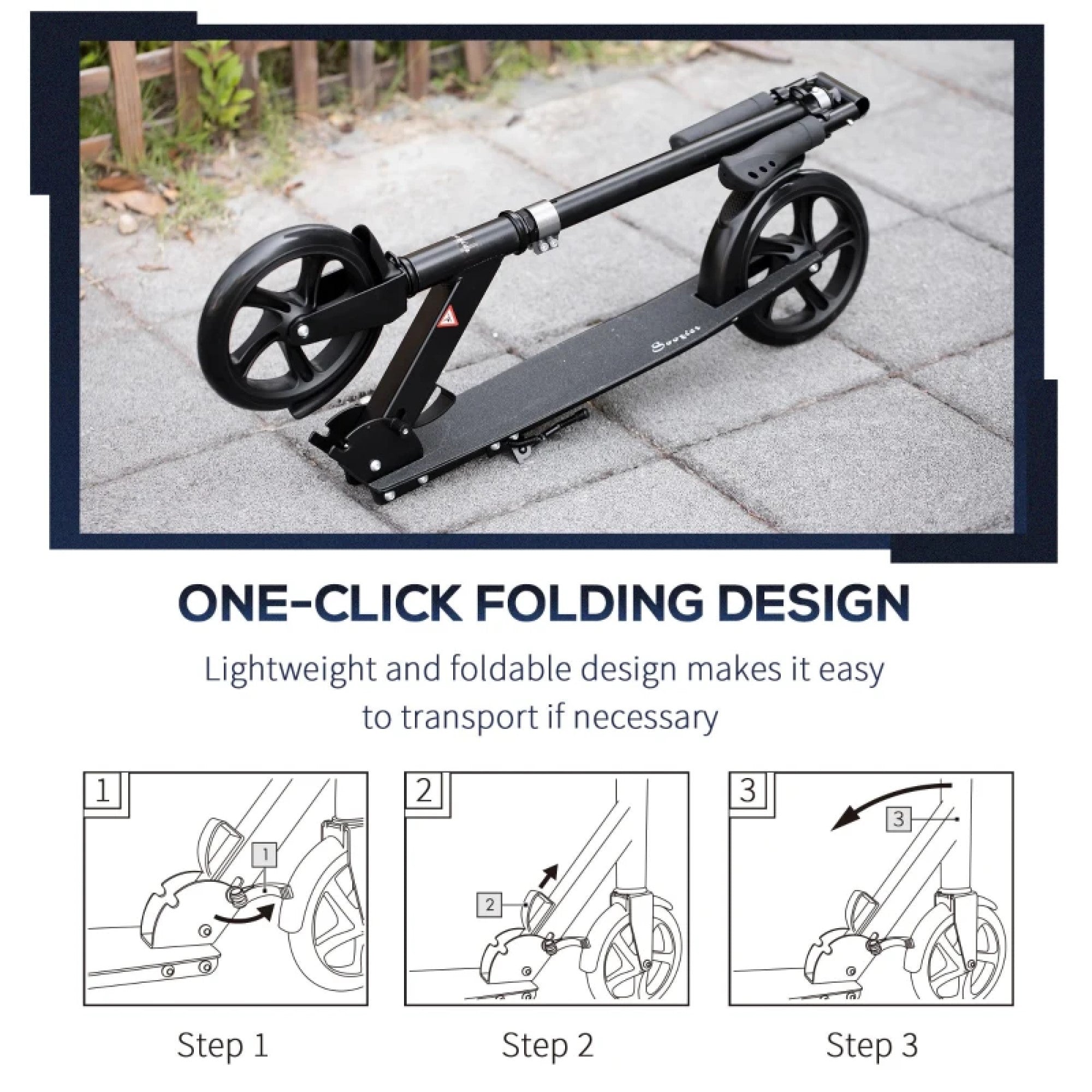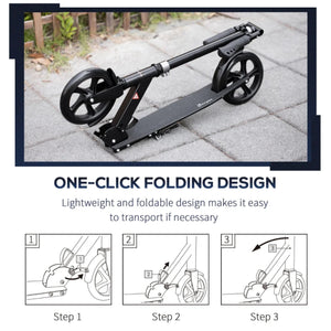 Kick Ride-On Scooter for 12 Years and Up, Folding Scooter with 3-Level Height Adjustable Handlebar, Big Wheels and Rear Wheel Brake, Black