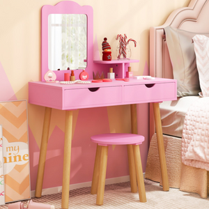 - Durable and Sturdy Construction: Made of durable MDF that is well painted, this 2-in-1 children's vanity set is built to last. The solid pine wood legs firmly support both the vanity table and the stool for excellent stability. More importantly, ASTM and CPSIA certifications add to reliability for safe use.