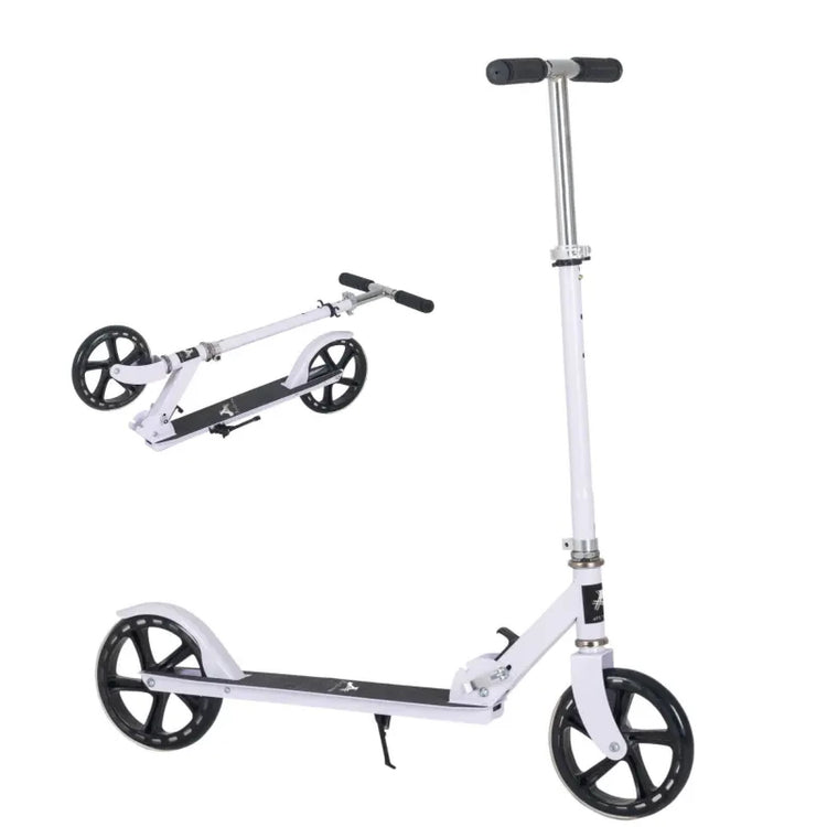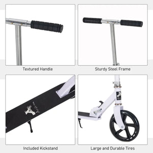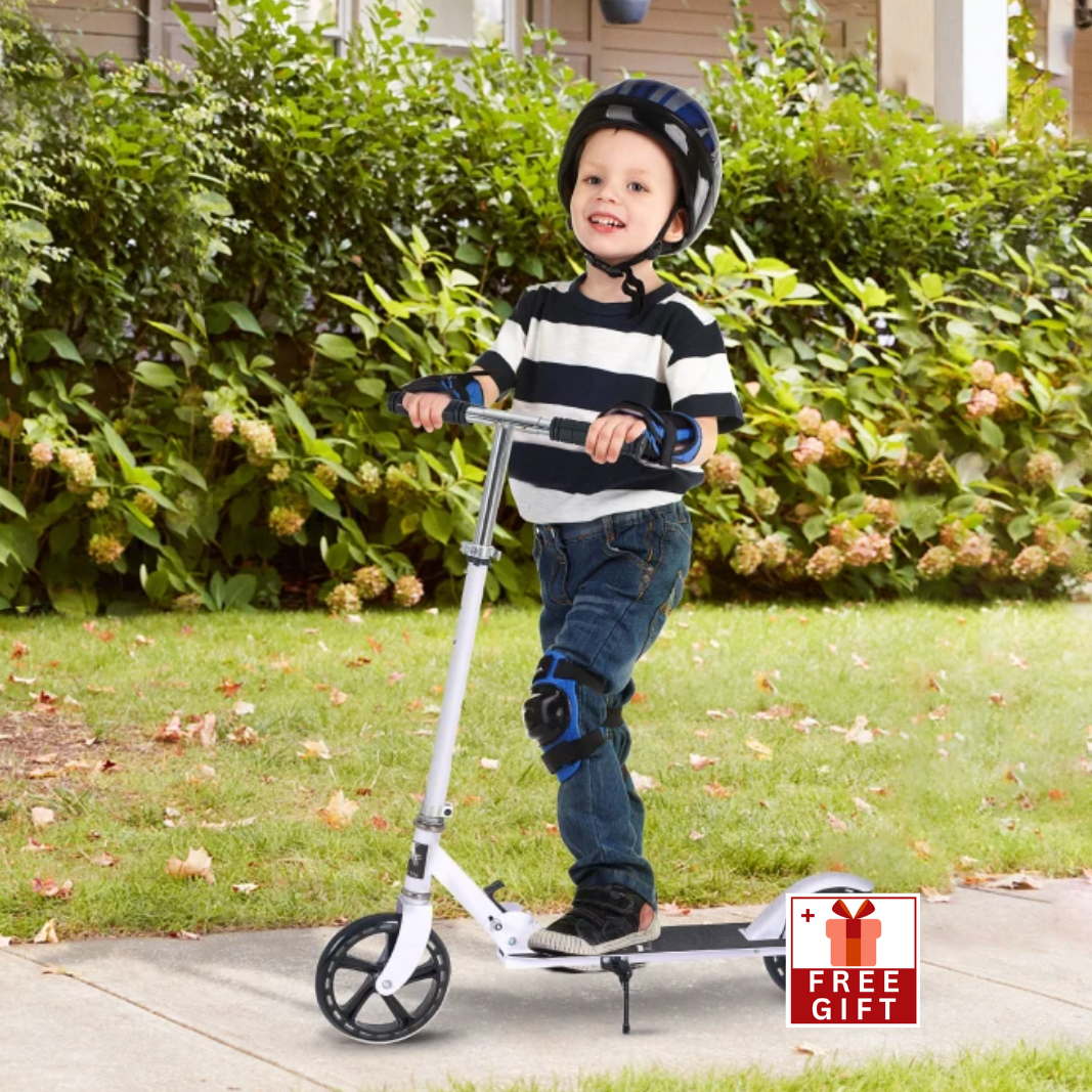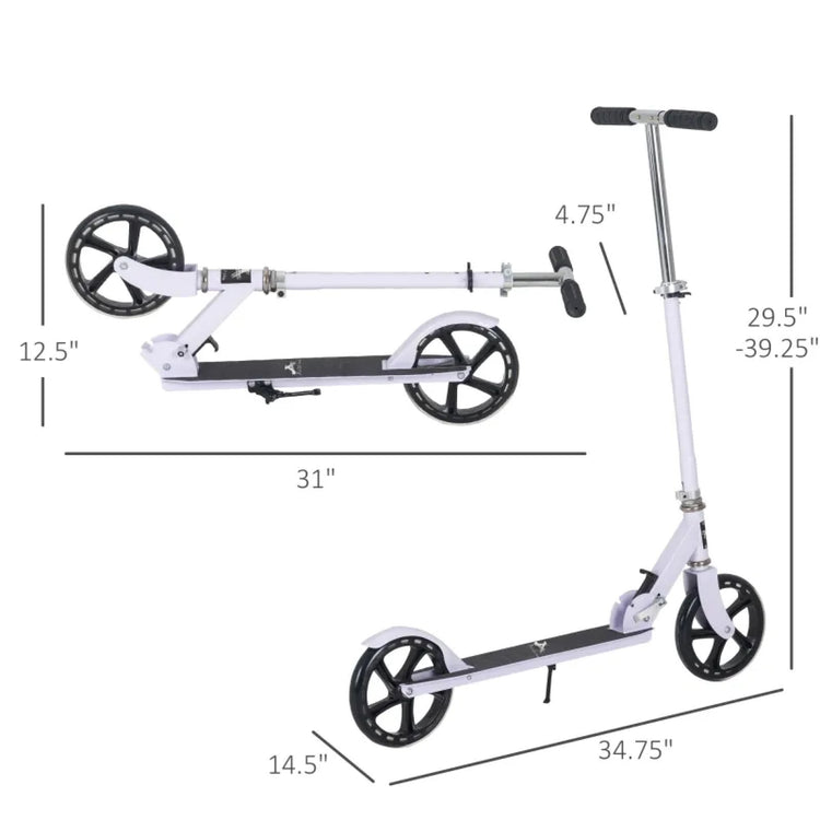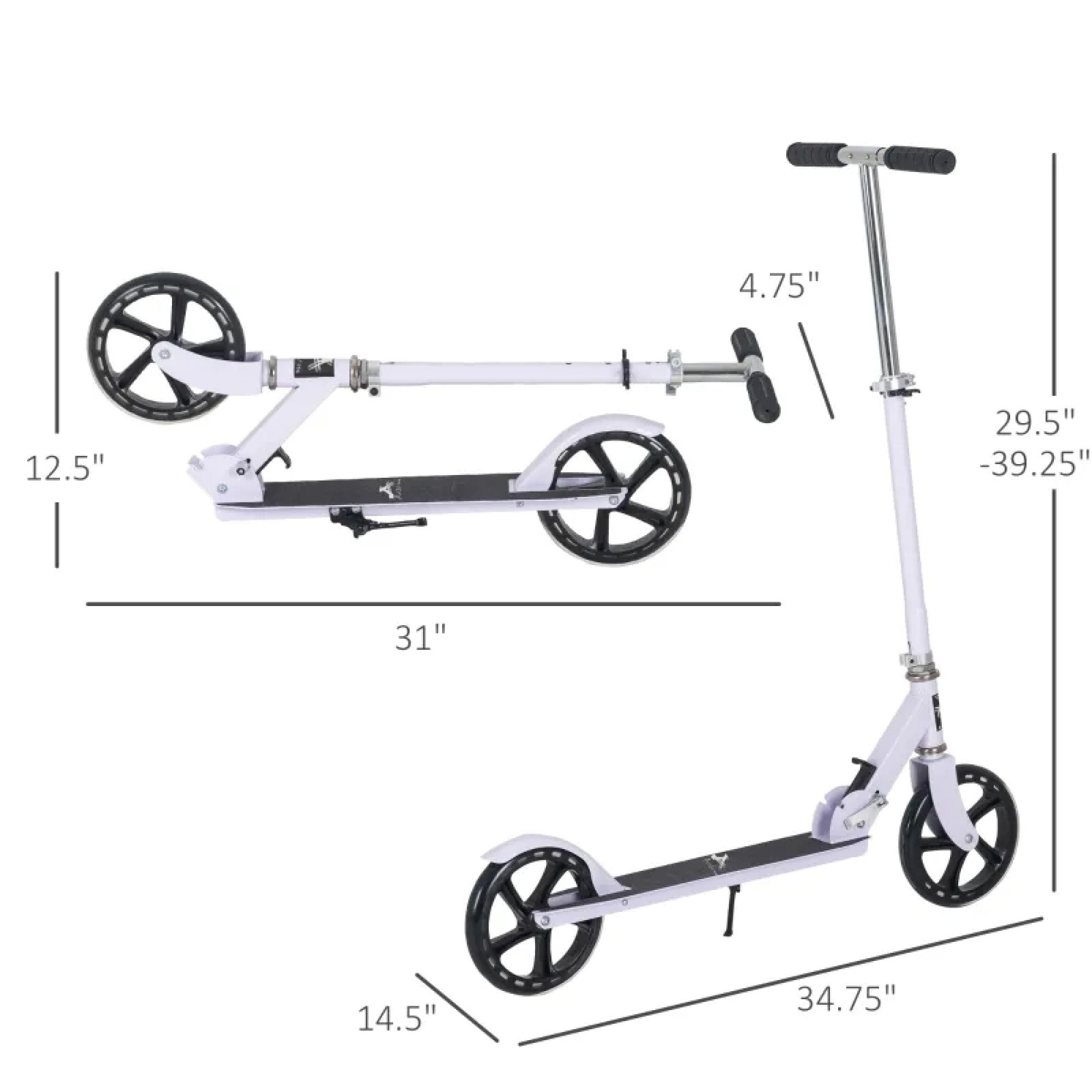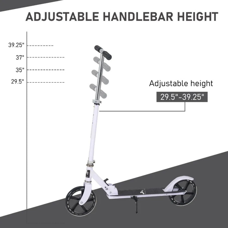 Kids Foldable Kick Scooter Ride-On Toy with Adjustable Height, Soft Textured Handles, Wide Deck, Brakes for Ages 7-14, 29.5" H - 39" H, White