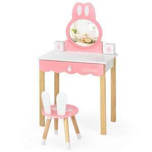Kids Rabbit Vanity Table Set with Mirror, Chair, and Storage Drawer