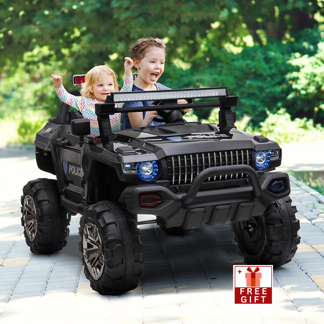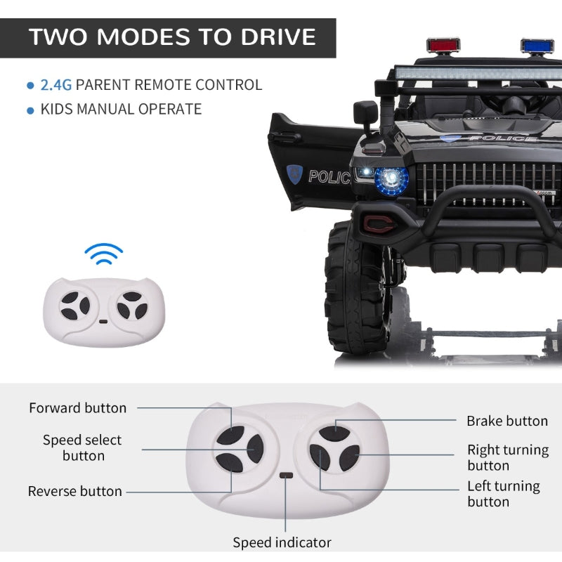 12V Police Ride-on Car, Electric Police jeep ride on with Remote Control, Car for Kids with MP3 Player - 2-Seater