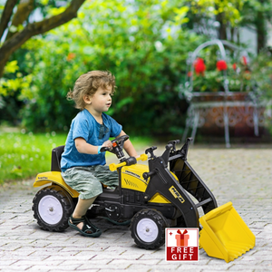 - Excavator Design: Covered in a vibrant yellow and black sticker design, this kid's ride-on tractor boasts a realistic and exciting appearance.