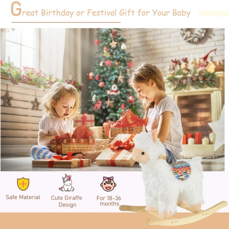 Kids Ride-On Rocking Horse Toy Ilama and Rabbit Style Rocker Soft Plush Fabric for Children 18-36 Months