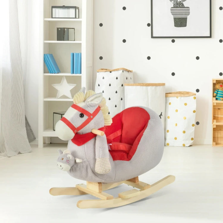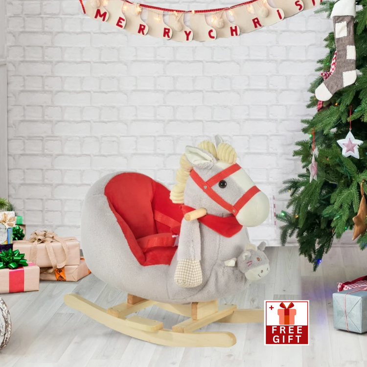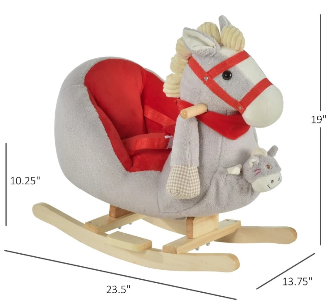 - Security First: Equipped with handles, a backrest, and a seat belt, this rocking horse ensures secure fun for children. The plush fabric covers the hard frame, providing comfort during play.