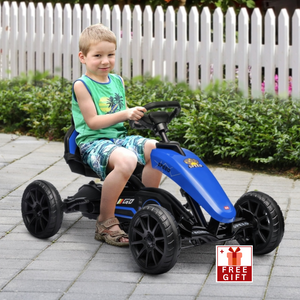 The Kids Ride-On Toy Pedal Go Kart is a versatile and durable go-kart, ride-on car for children aged 3-8. It features an adjustable seat that grows with your child, ensuring a comfortable fit for years of fun. With forward and reverse drive, a hand brake for easy stopping, and shock-absorbing wheels, this pedal-powered ride-on go-kart offers a smooth and stable ride on various surfaces. Powered by pedals, it promotes physical activity and helps develop motor skills. Safety is ensured with ASTM F963 and CPSIA qualifications. Easy to operate and assemble, this ride-ons provide hours of outdoor entertainment for your child.
